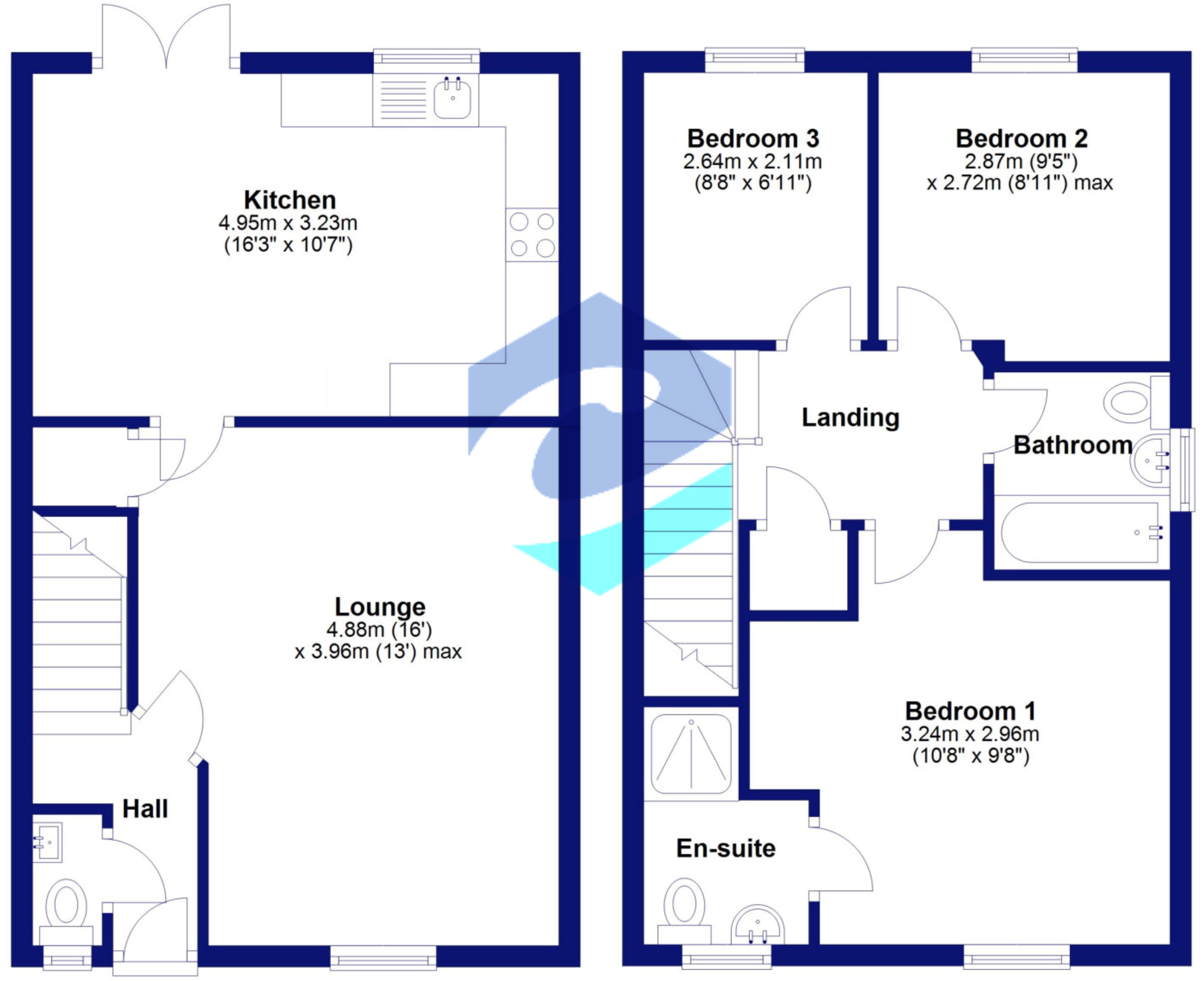 On the first floor all rooms are accessed from the landing which has an airing cupboard. The master bedroom has an en-suite with a shower cubicle, low level WC and wash hand basin. There are a further two bedrooms and a family bathroom fully equipped with a white suite.