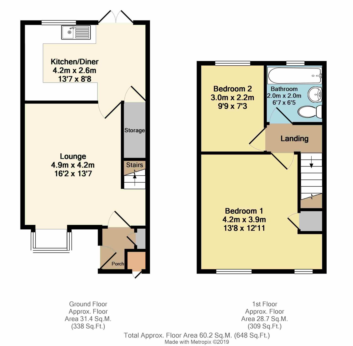 The accommodation in brief comprises: Entrance porch with storage cupboard, a door leads into the front facing lounge, stairs rise to the first floor landing and a door leads into the dining kitchen. The kitchen provides a range of wall and base units with gas cooker point, space and plumbing for an automatic washing machine and fridge freezer. A door leads to a good sized storage cupboard and French style doors lead to the rear enclosed garden.