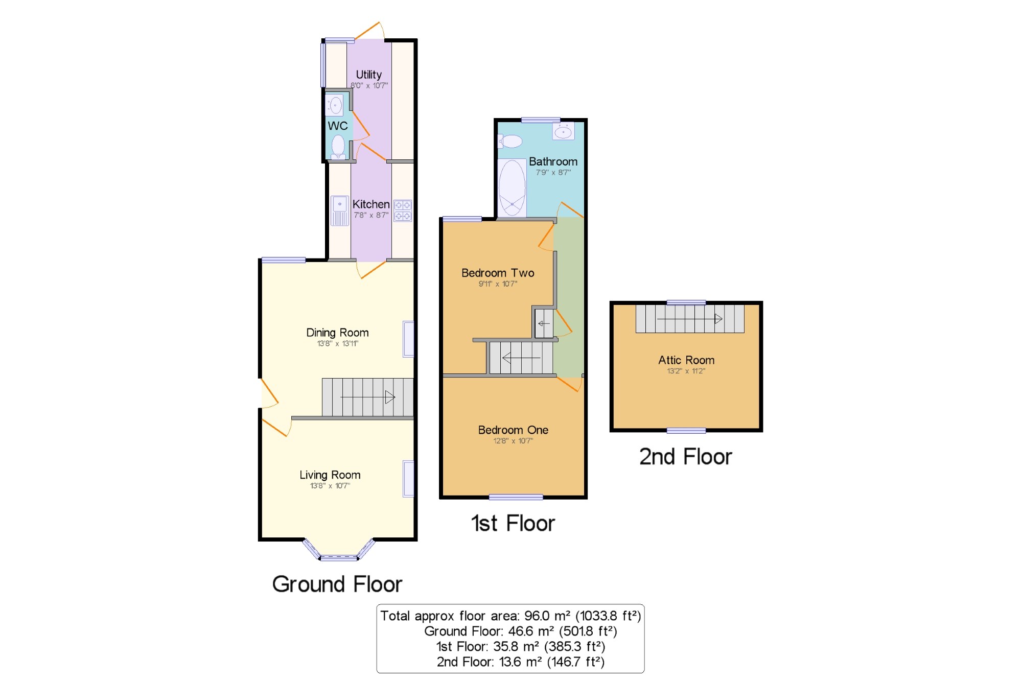 Bedroom Two9'11" x 10'7" (3.02m x 3.23m). Double glazed uPVC window facing the rear. Radiator, original floorboards, a built-in wardrobe.