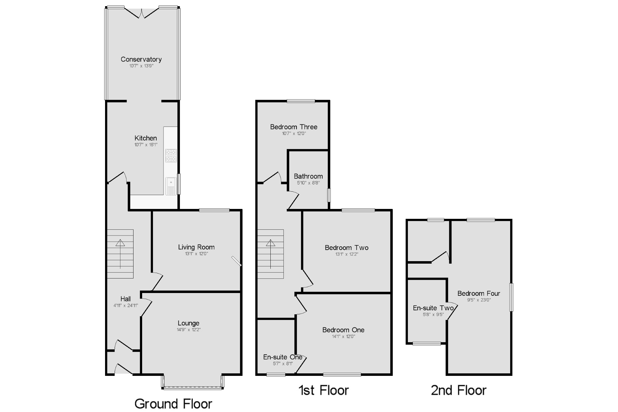 Bedroom Four 9'5" x 23' (2.87m x 7m).
