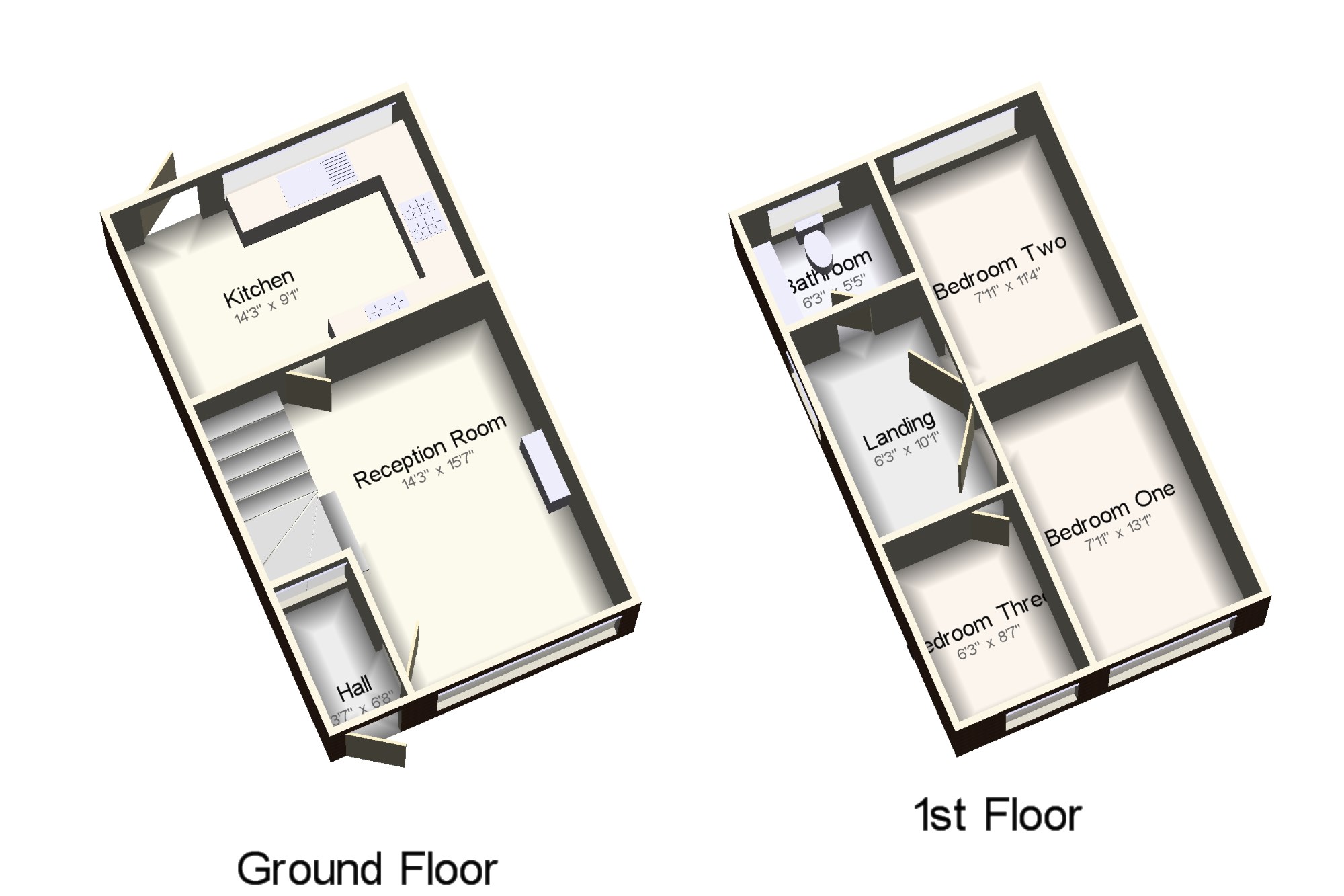Bedroom Three6'3" x 8'7" (1.9m x 2.62m). Double glazed uPVC window facing the front overlooking the garden. Radiator, carpeted flooring, ceiling light.