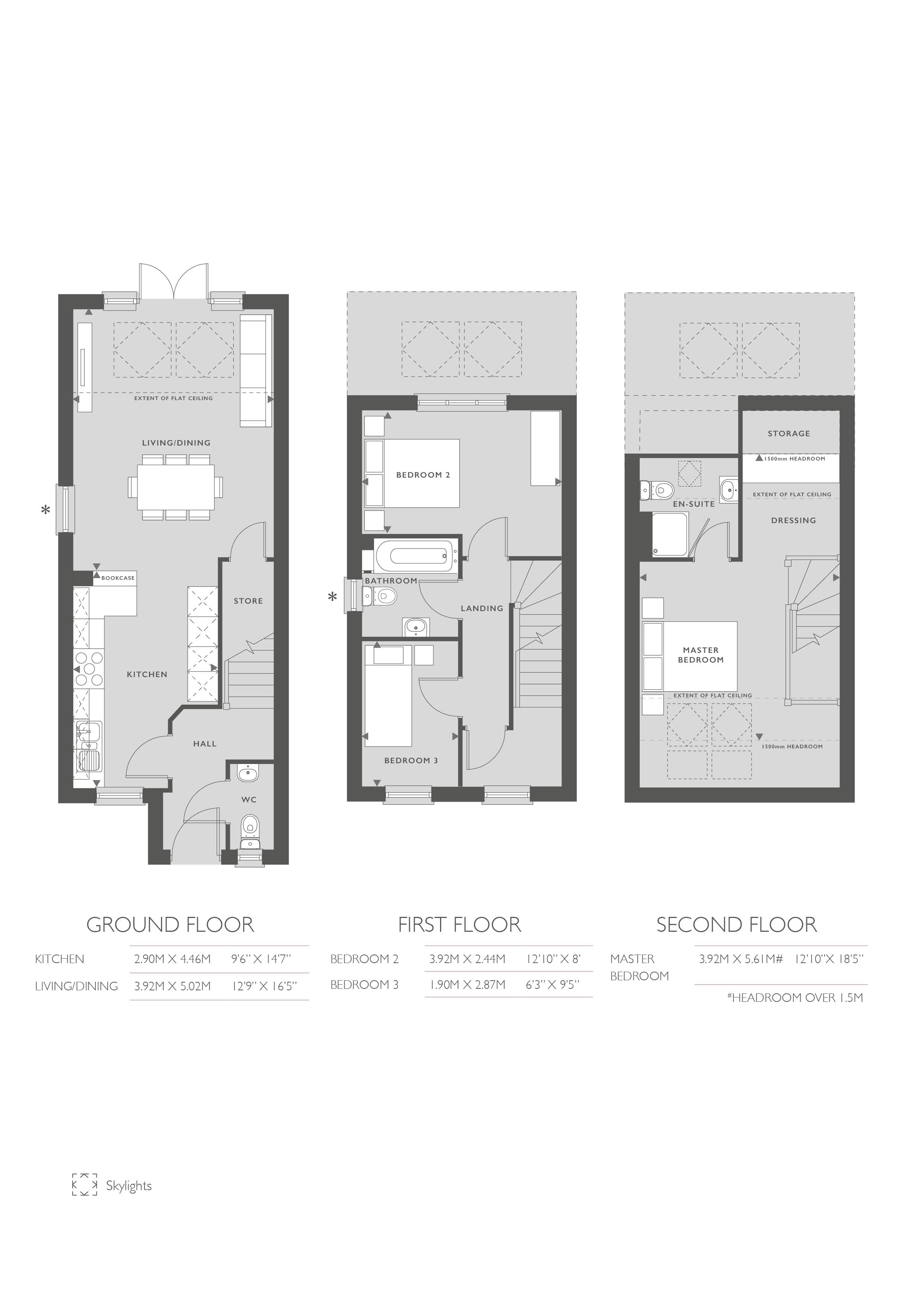 A downstairs WC adds the finishing touch. Up on the first floor you will find two bedrooms along with a family bathroom. The generously proportioned master bedroom on the second floor is naturally lit with more skylight windows and features a dressing area alongside the en-suite bathroom.
