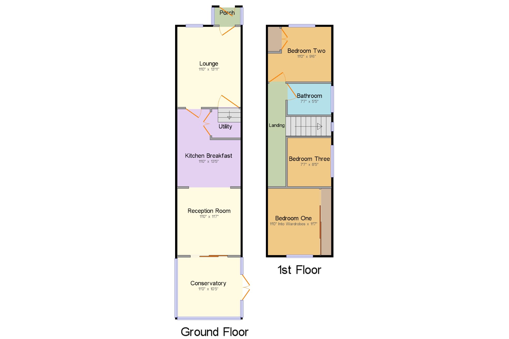 Bedroom One11' x 11'7" (3.35m x 3.53m). Double bedroom with double glazed window to the rear elevation, fitted wardrobes and carpeted flooring.