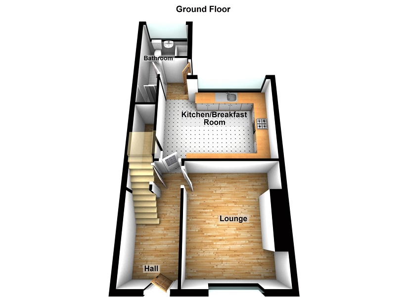 Frosted double glazed entrance door to front. Double radiator, tiled flooring, door to storage cupboard and stairs to first floor.