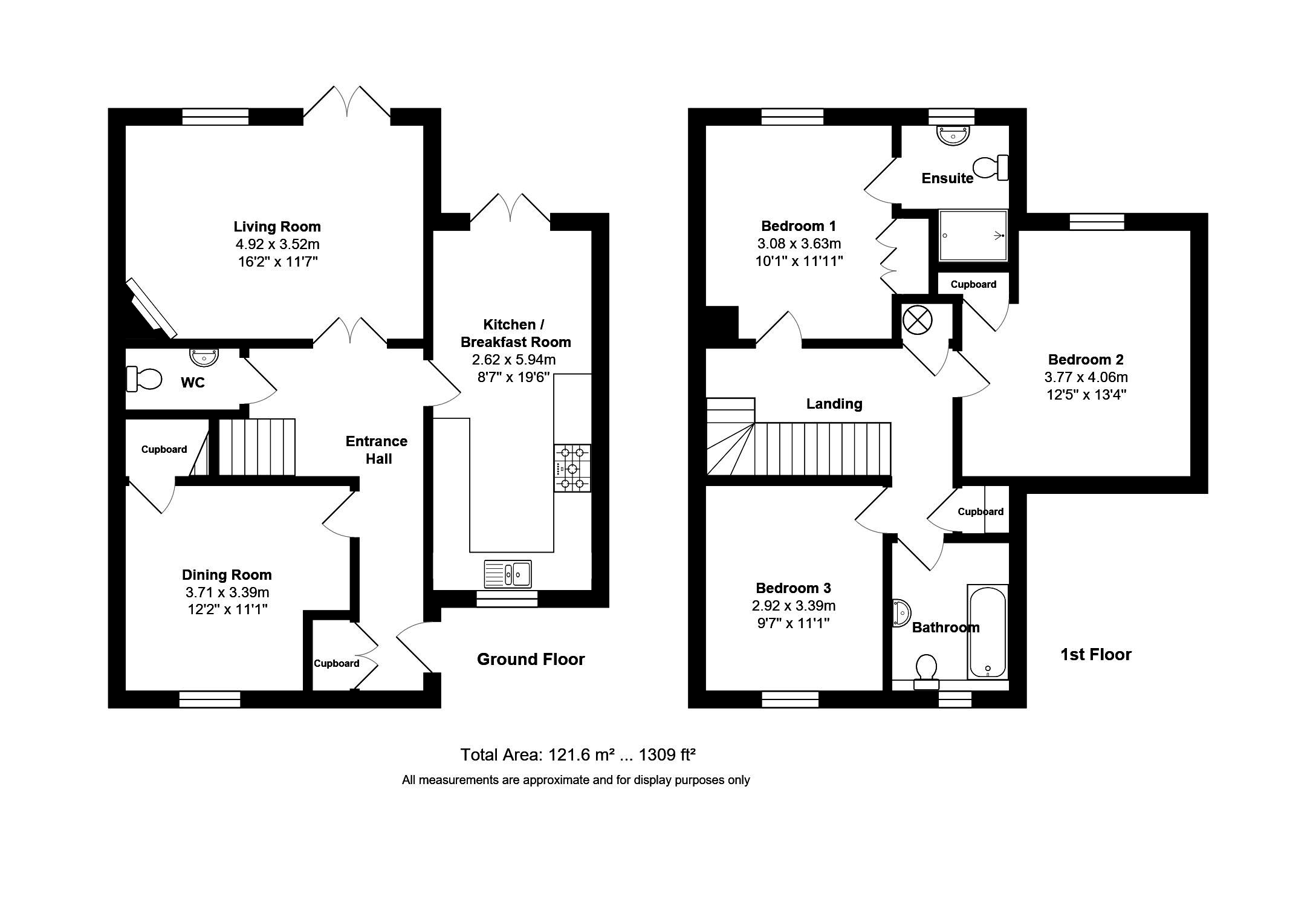 The beautifully presented accommodation is arranged over two floors and extends in all to 1,309 . The ground floor comprises an entrance hall with built in storage and WC serving a front dining room, a fitted kitchen/breakfast room with built in appliances and French doors to the garden, whilst the living room has a fireplace and further double doors to the garden. On the first floor are three good sized double bedrooms and a modern family bathroom whilst the master bedroom has built in storage and an en-suite shower room.