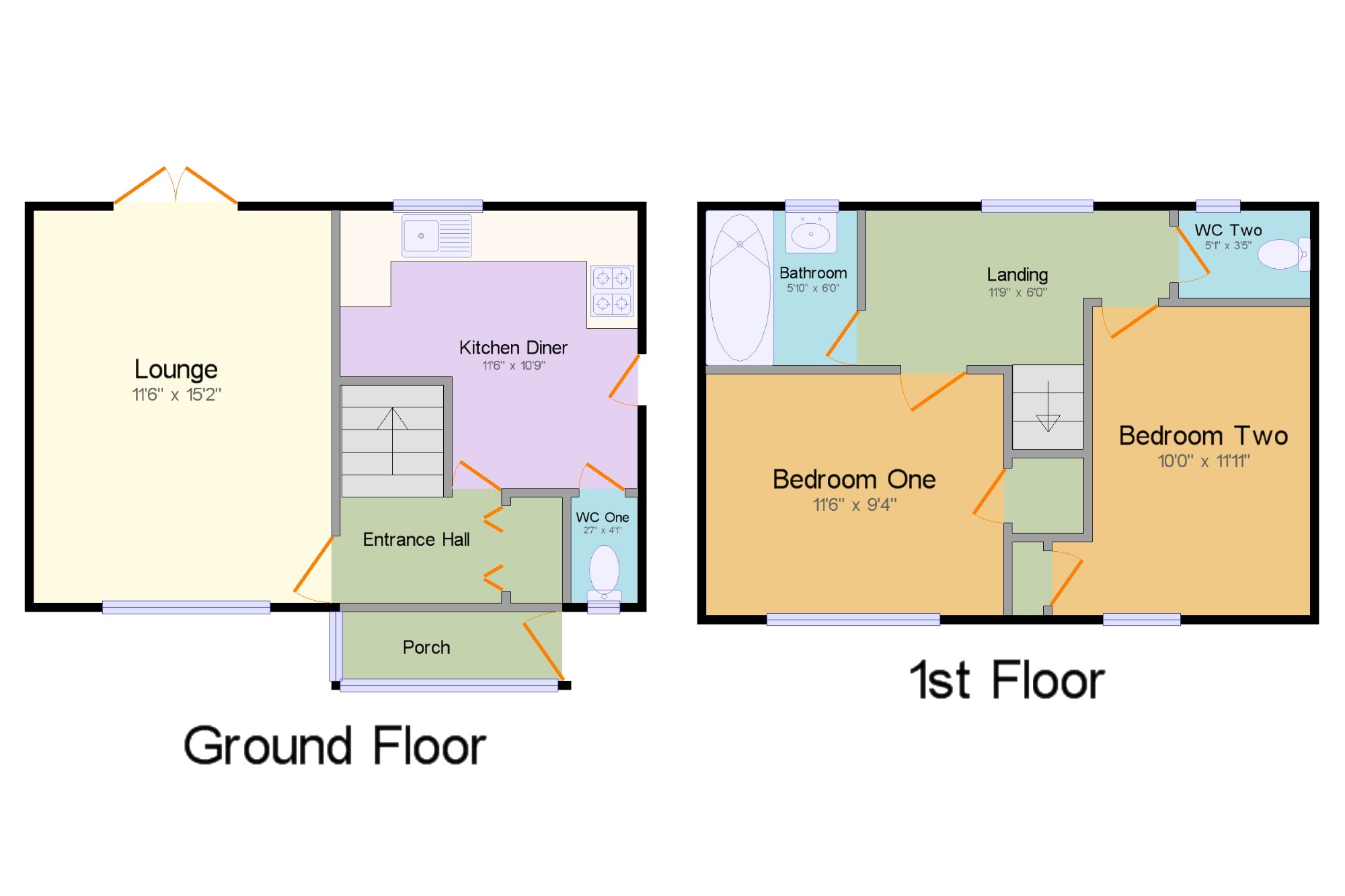 WC Two5'1" x 3'5" (1.55m x 1.04m). Double glazed uPVC window with patterned glass facing the rear overlooking the garden. Standard WC.