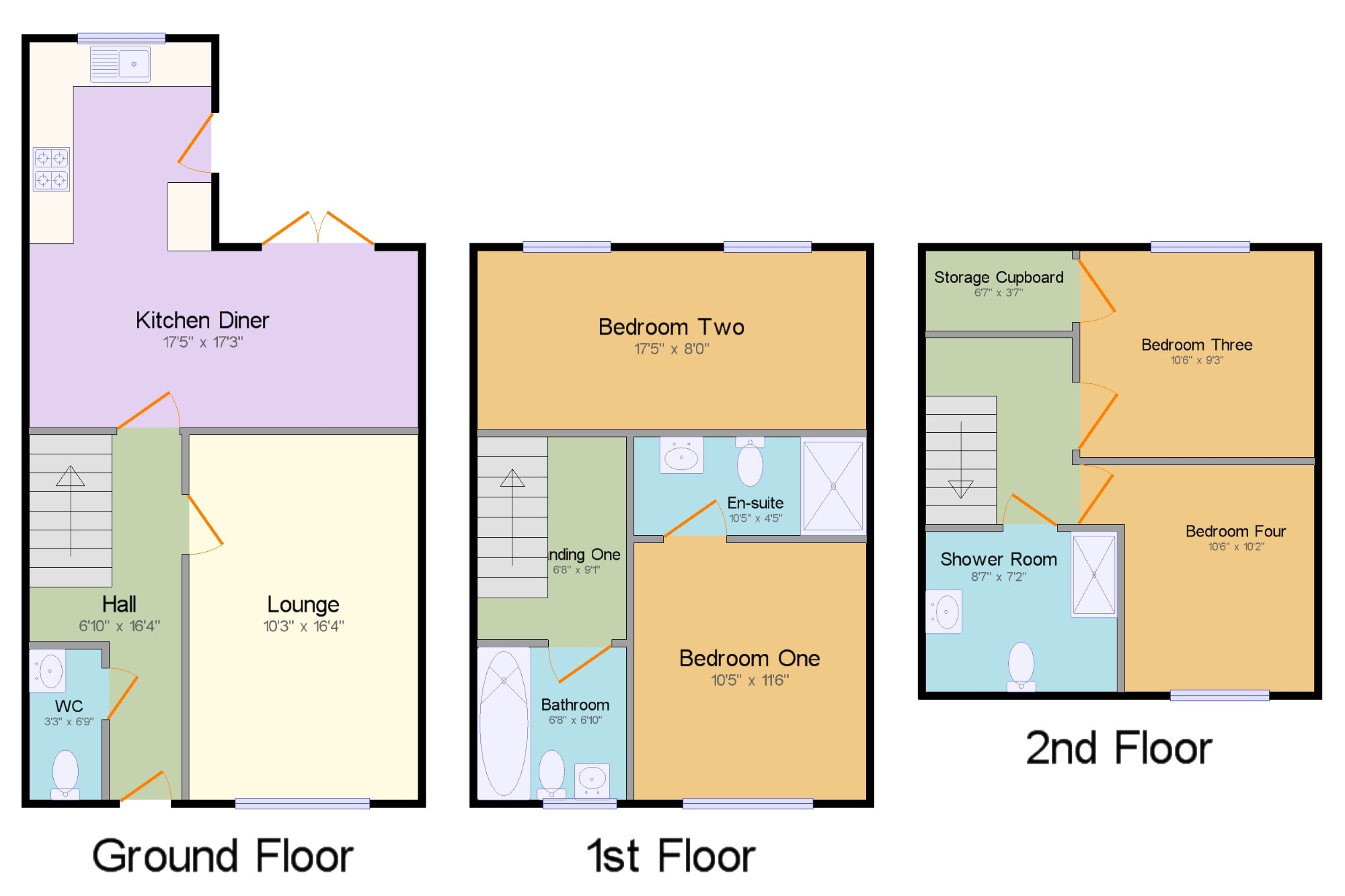 This spacious three story four bedroom family home is brought to the market with no onward chain and boasts a driveway for two cars, detached garage and gardens to both the front and rear. Upon entering you will be greeted by a welcoming entrance hall leading to the lounge, kitchen/diner and wc. The first floor houses two well proportioned bedrooms, en-suite and a family bathroom. There are a further two bedrooms and a shower room on the third floor.