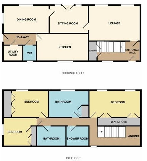 An open plan staircase leads to the first floor landing with access to all rooms and a window to the front elevation.
