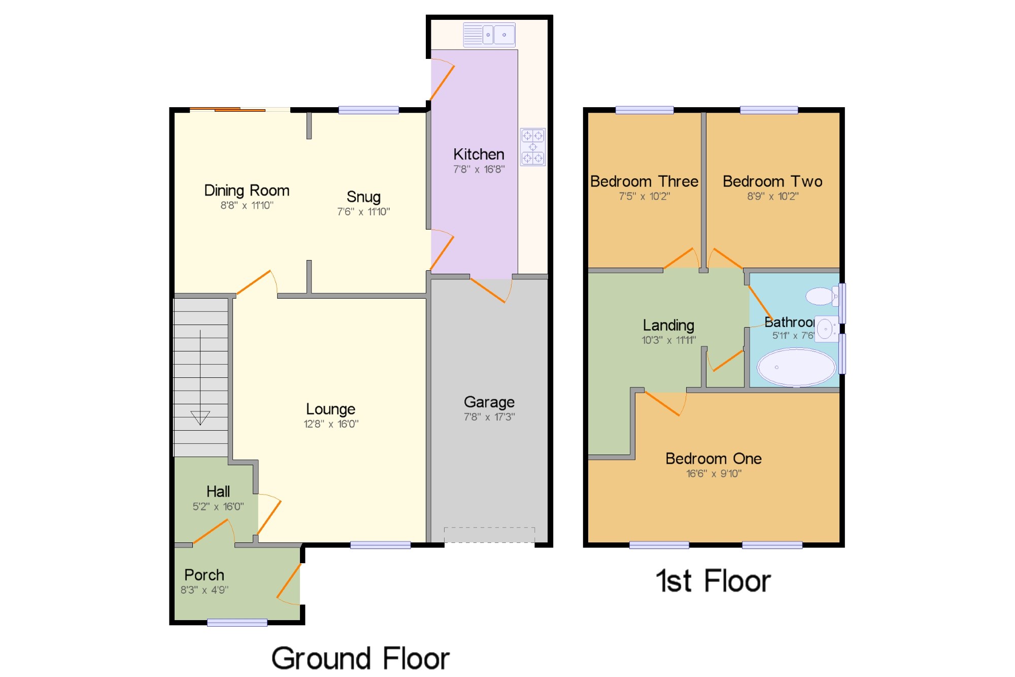 Garage 7'8" x 17'3" (2.34m x 5.26m).