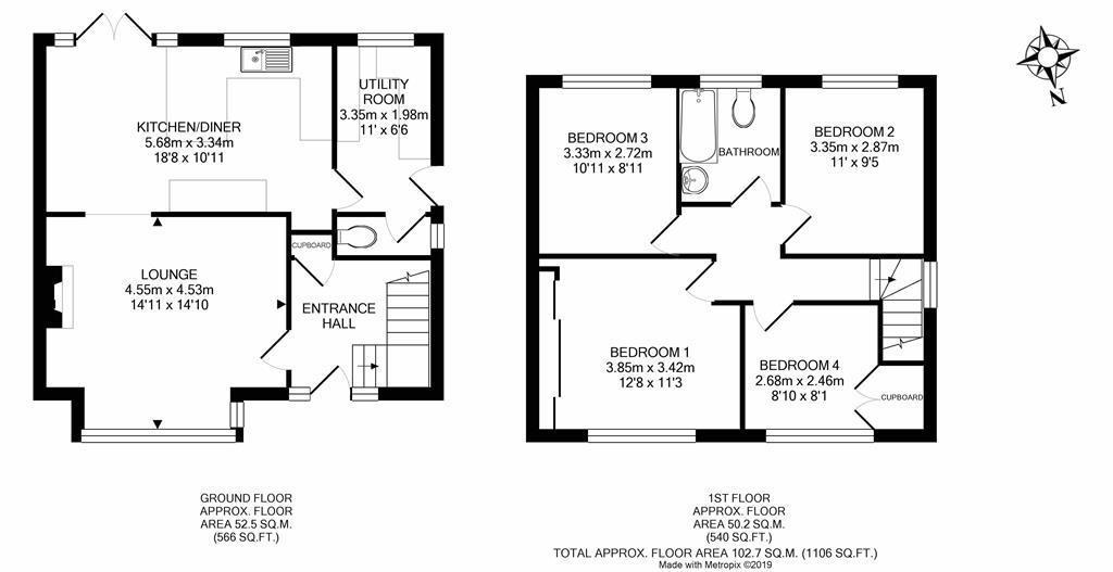 3.85m (12' 8") x 3.42m (11' 3")