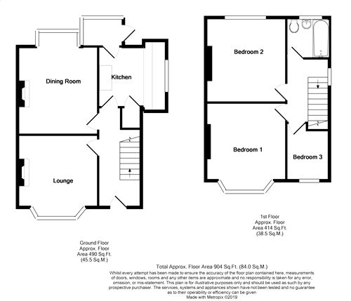 Panelled bath with electric shower over, double panelled radiator, opaque double glazed window to rear, pedestal wash hand basin, low level WC. Vinyl flooring.