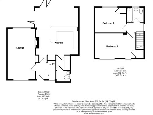 UPVC window to rear, fully tiled walls, W.C., basin, bath with shower over, shower screen. Chrome towel radiator.