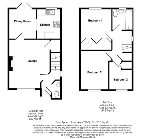 Opaque uPVC double glazed window to rear, panelled bath with mains shower over, low level WC, wash hand basin, tiled walls, towel rail/radiator, extractor fan. Vinyl floor.