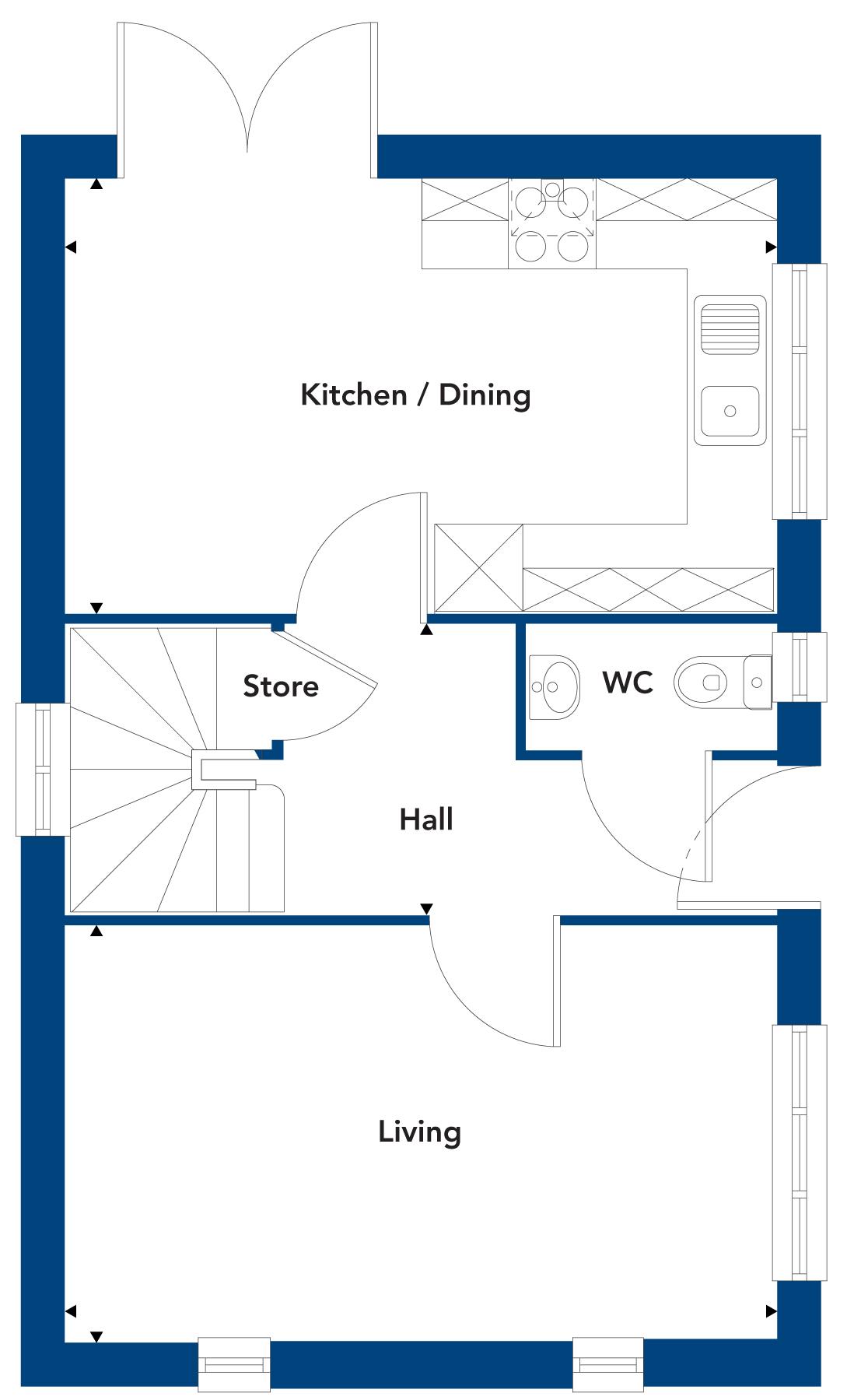The welcoming central hallway of the Grantham sits in between the living room and the kitchen. A house designed with you in mind, the spacious lounge provides the perfect area to relax, whilst the dining/kitchen area provides a great place to spend time and entertain with its French windows opening on to the garden. A WC is conveniently situated off the hallway completes the downstairs.