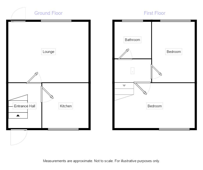 From the entrance hall is the kitchen with a good range of wall & base units with complimentary work surfaces and tiled splash-backs. Space for a washing machine and a fridge/freezer. Built in oven and hob. The pleasant lounge looks out onto the garden with a picture window and door leading to the rear, understairs storage cupboard. Stairs lead to the first floor landing with two generous size bedrooms with one having built in storage. The bathroom has a suite comprising a bath with shower above, pedestal wash hand basin and low level WC. To the rear of the property is a private and enclosed rear garden which is mainly laid to lawn.