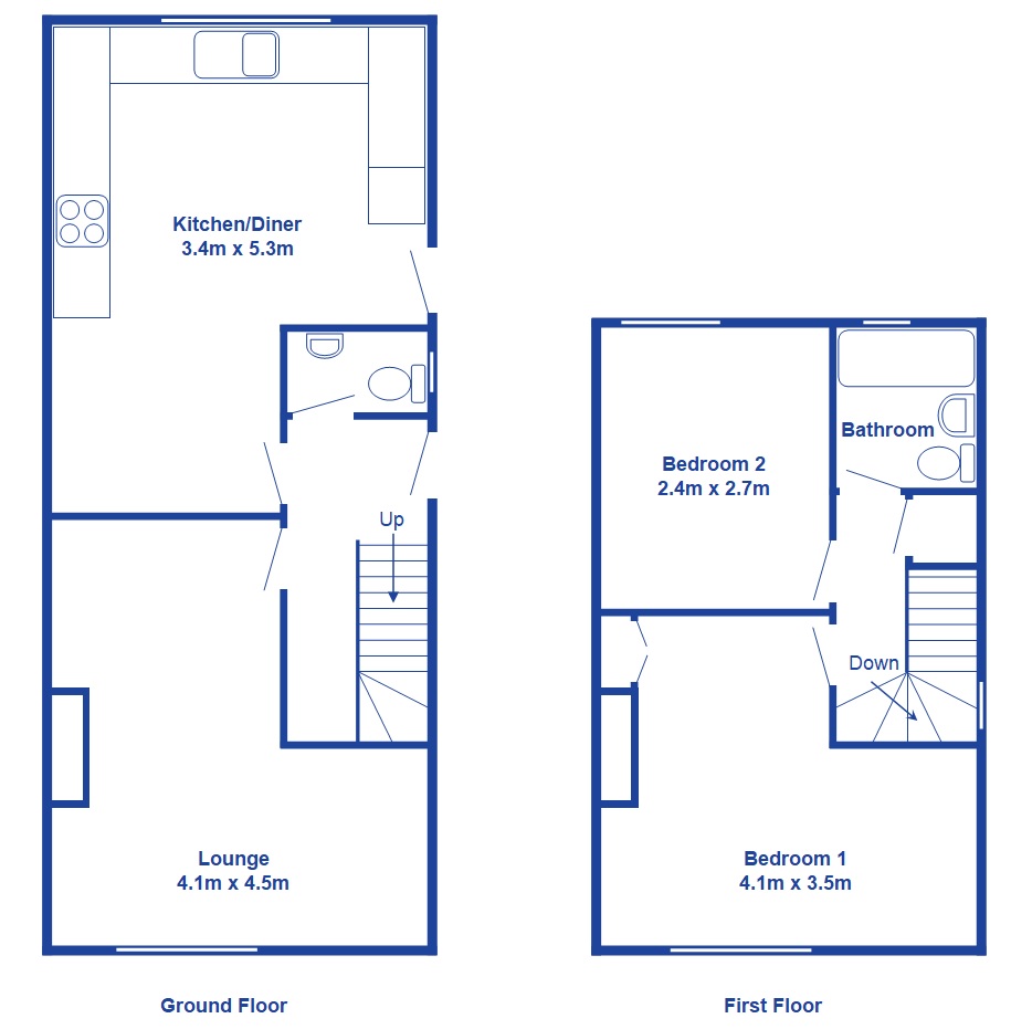 The accommodation offers - on the ground floor, a large kitchen with dining area, cozy lounge with decorative fireplace, downstairs WC and plenty of storage cupboards.