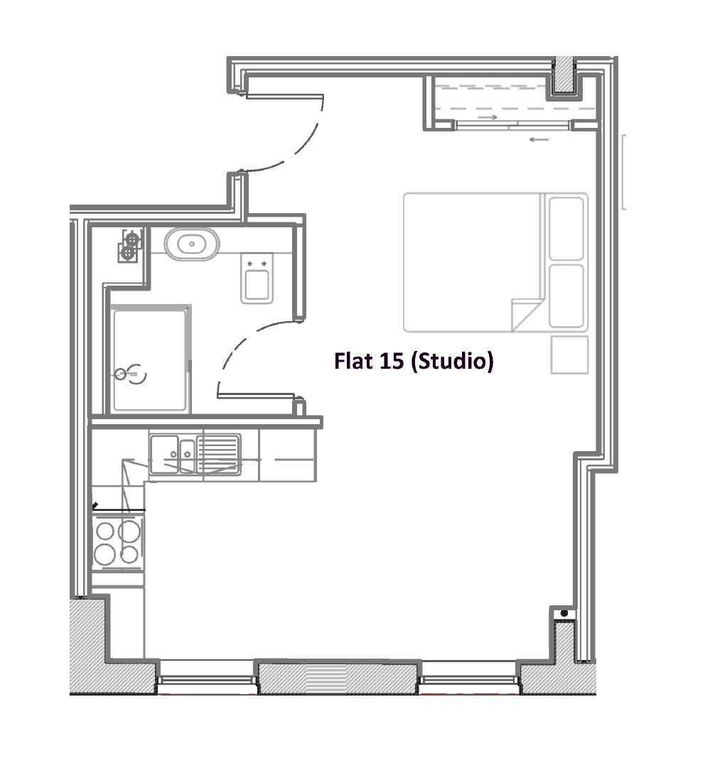 town centre location Second floor studio apartment with fitted wardrobe, open plan kitchen fitted with integral appliances, spacious lounge/diner/bedroom area, porcelanosa shower room suite. LED lighting, flooring included with underfloor heating