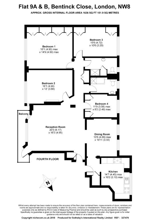 This outstanding 4 bedroom, apartment (151.9 Sq. M / 1,636 Sq. Ft .Set within one of St John's Wood's most sought after blocks with offering unobstructed views (witha private balcony) south across Regents Park.