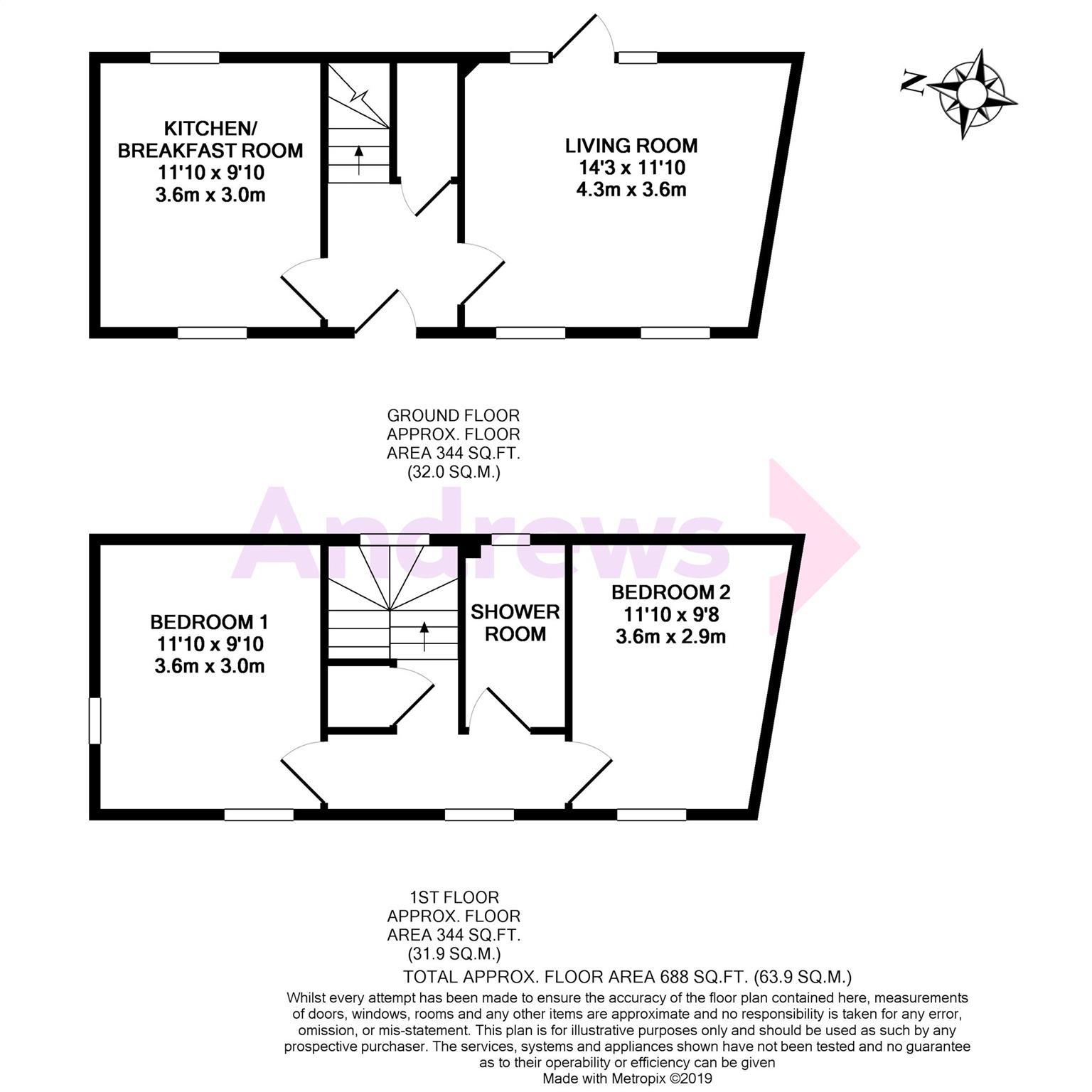 The property consists of 668 square foot of living accommodation with the ground floor consisting of a kitchen diner with a separate living room with access onto the rear garden area.