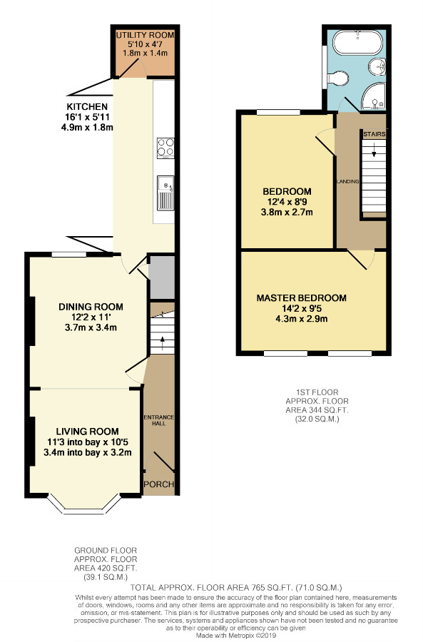 The second bedroom is a well-proportioned double with storage space whilst the master is a large double with space saving fitted wardrobes. Both rooms are carpeted for warmth and are bright with plenty of natural light.
