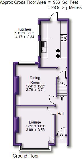 Lounge with a double glazed uPVC boxed bay window to the front elevation. To the chimney breast is a an attractive Victorian style working open fireplace with decorative wooden surround, tiled insert and hearth with cast iron grate. Picture rail. Coved ceiling. Meter cupboard. Stripped and stained floorboards.
