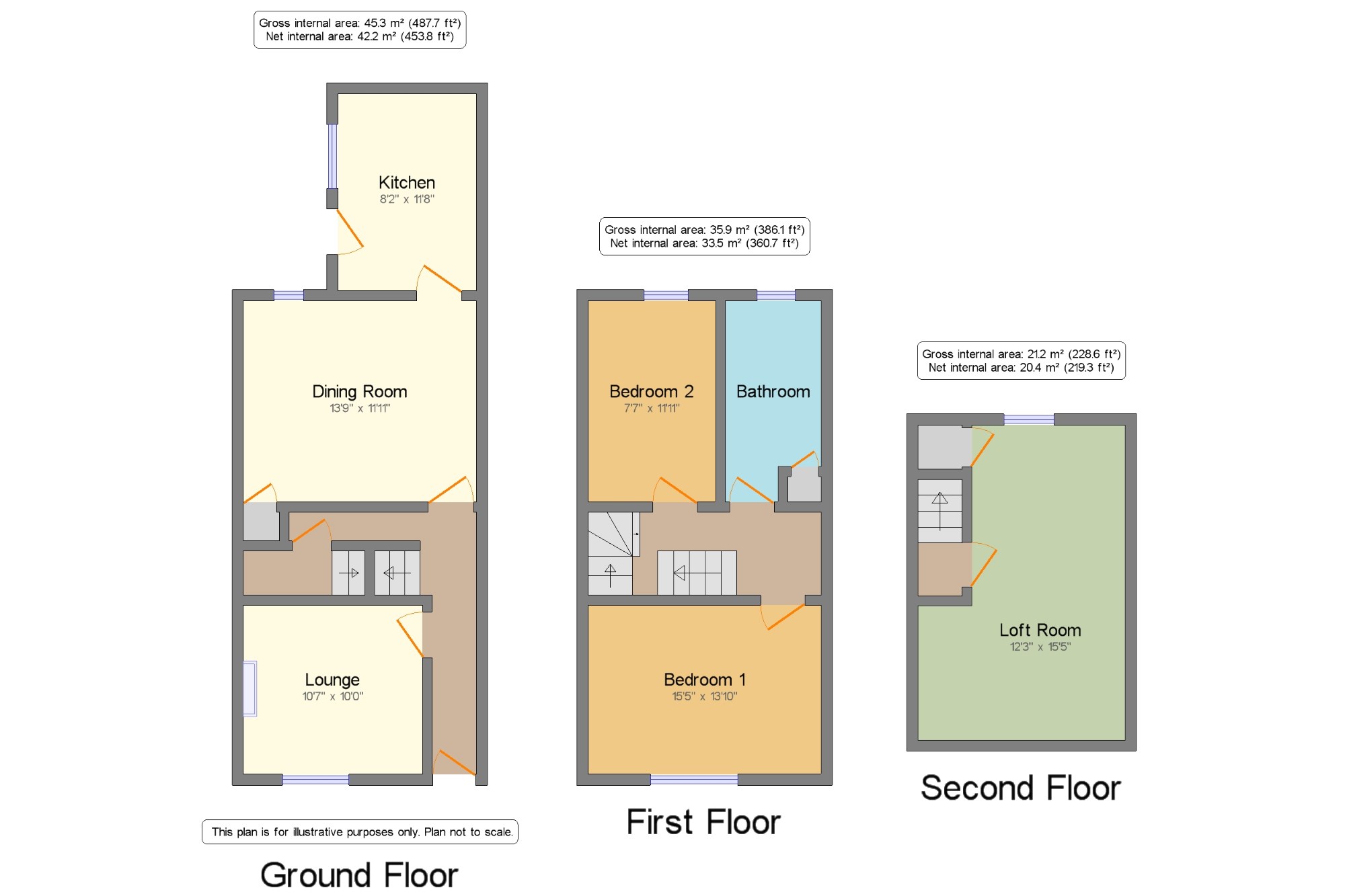This well presented terraced property comprises briefly of: Entrance hallway, Two generous reception rooms, kitchen, two large bedrooms, family bath room, stairway leading to Loft room, large rear garden