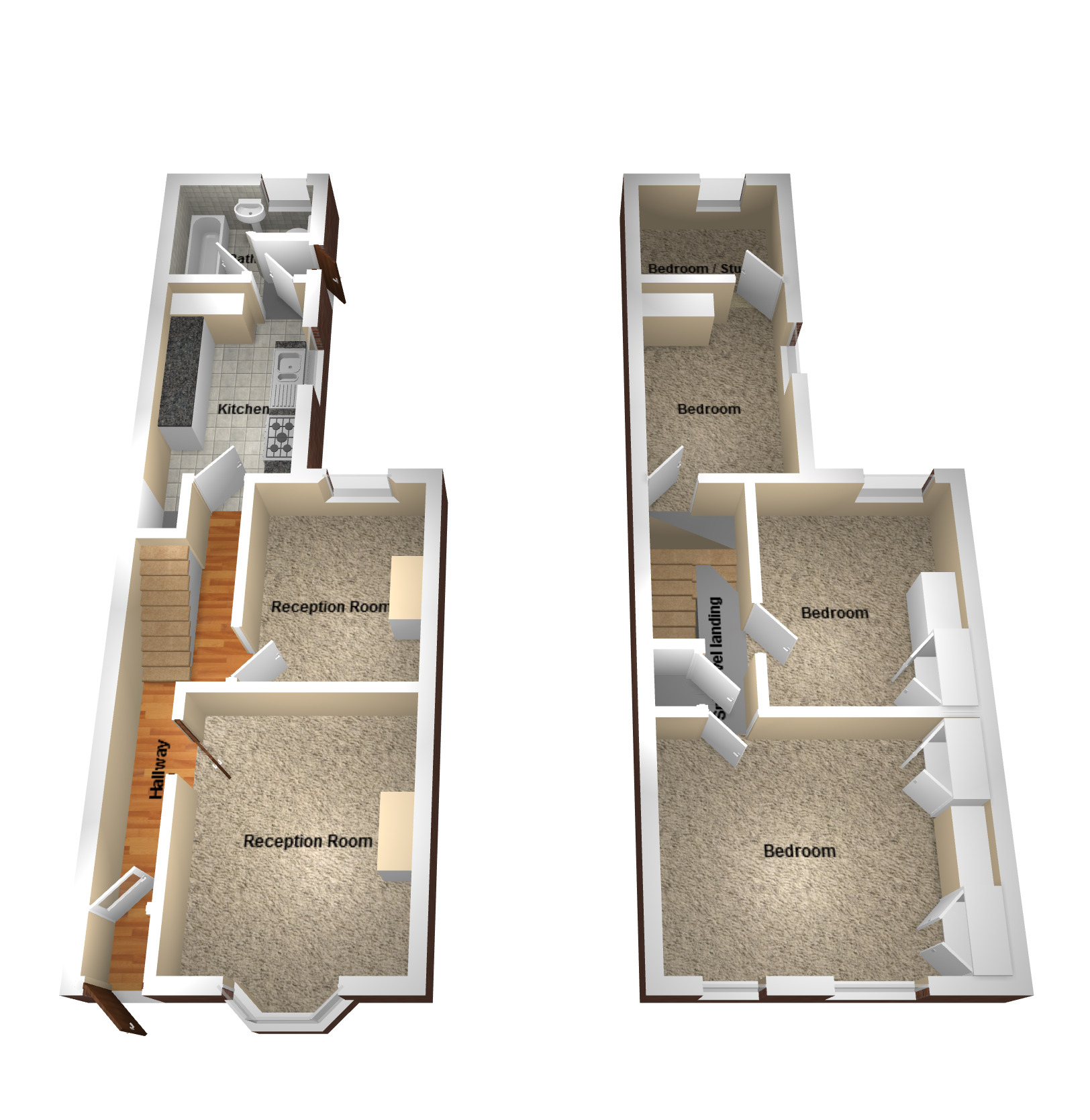 Upstairs the split level landing leads to three good size bedrooms plus a useful box room/study room which could also be used as an additional bedroom.