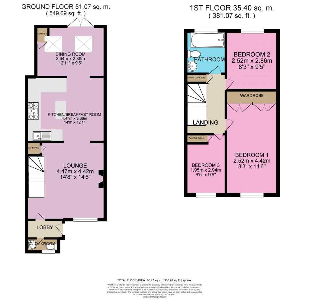 Upstairs this home offers 2 double bedrooms and a single along with a family bathroom. The master bedroom at over 5 metres long is an impressive space with large built in wardrobes to one end and still plenty of room for a king size bed, draws and vanity table. Bedroom two is a comfortable double with views out over the rear garden. Bedroom 3 is a lovely single room with enough space to make sure it works as a bedroom, study or nursery as required. The family bathroom is tiled and the bath has an overhead electric shower and glass screen fitted.