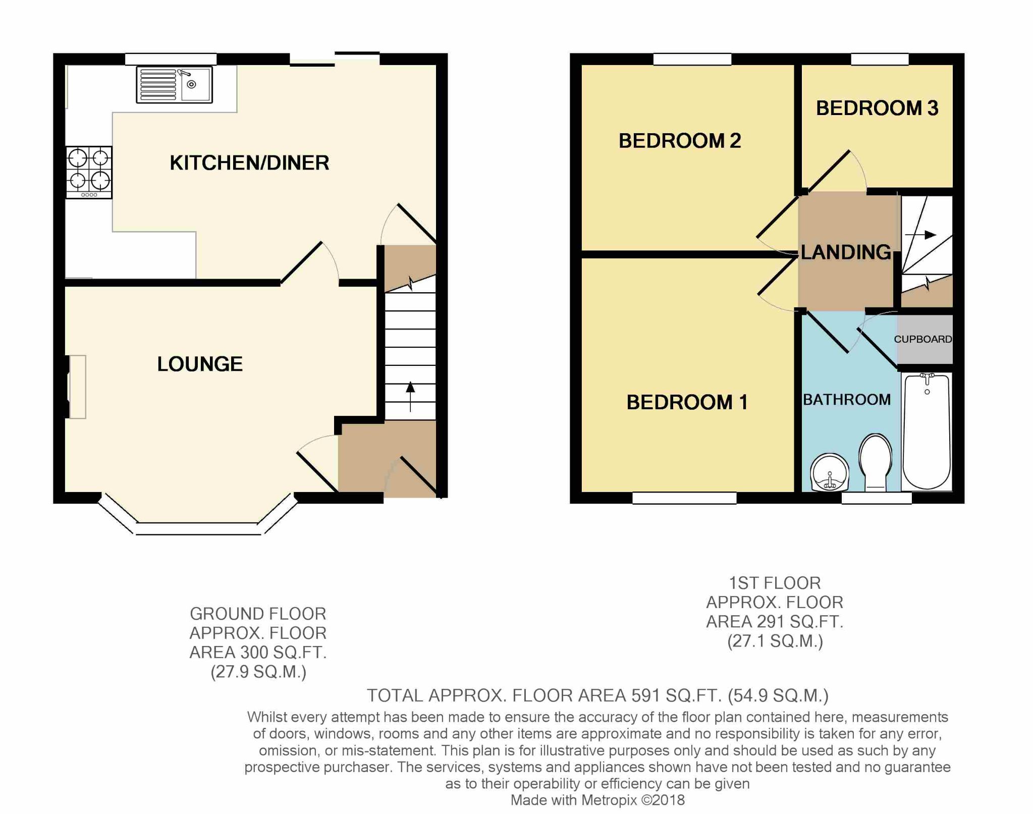 The kitchen-diner has a window and sliding patio doors which give access to the enclosed rear garden. The kitchen has wall and base units with worktops incorporated with a stainless steel sink side drainer. There is a built in oven and hob with an extractor over. To the side of the kitchen is space for a dining table and chairs with a door giving access to the under stairs cupboard. The kitchen houses the boiler which is hidden away in a cupboard.