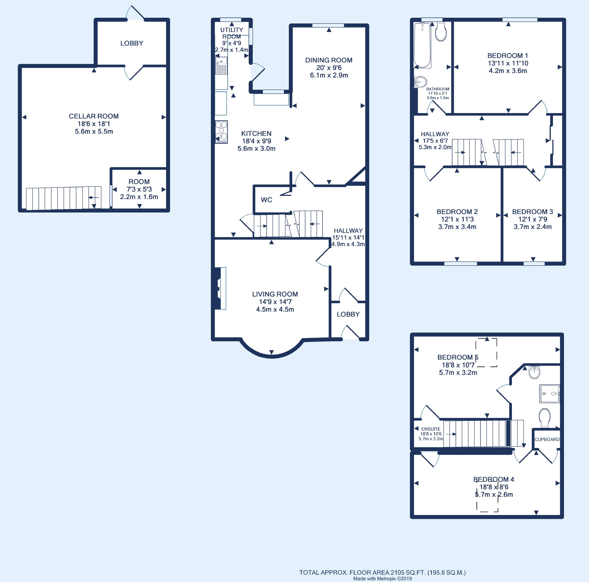 There are 5 double-bedrooms arranged across the first and second floor. There is a family bathroom on the first floor and an en suite bathroom adjoining the 4th/5th bedroom on the 2nd floor. To the lower ground floor you can access additional storage through to the basement which also has a separate door leading to the garden.