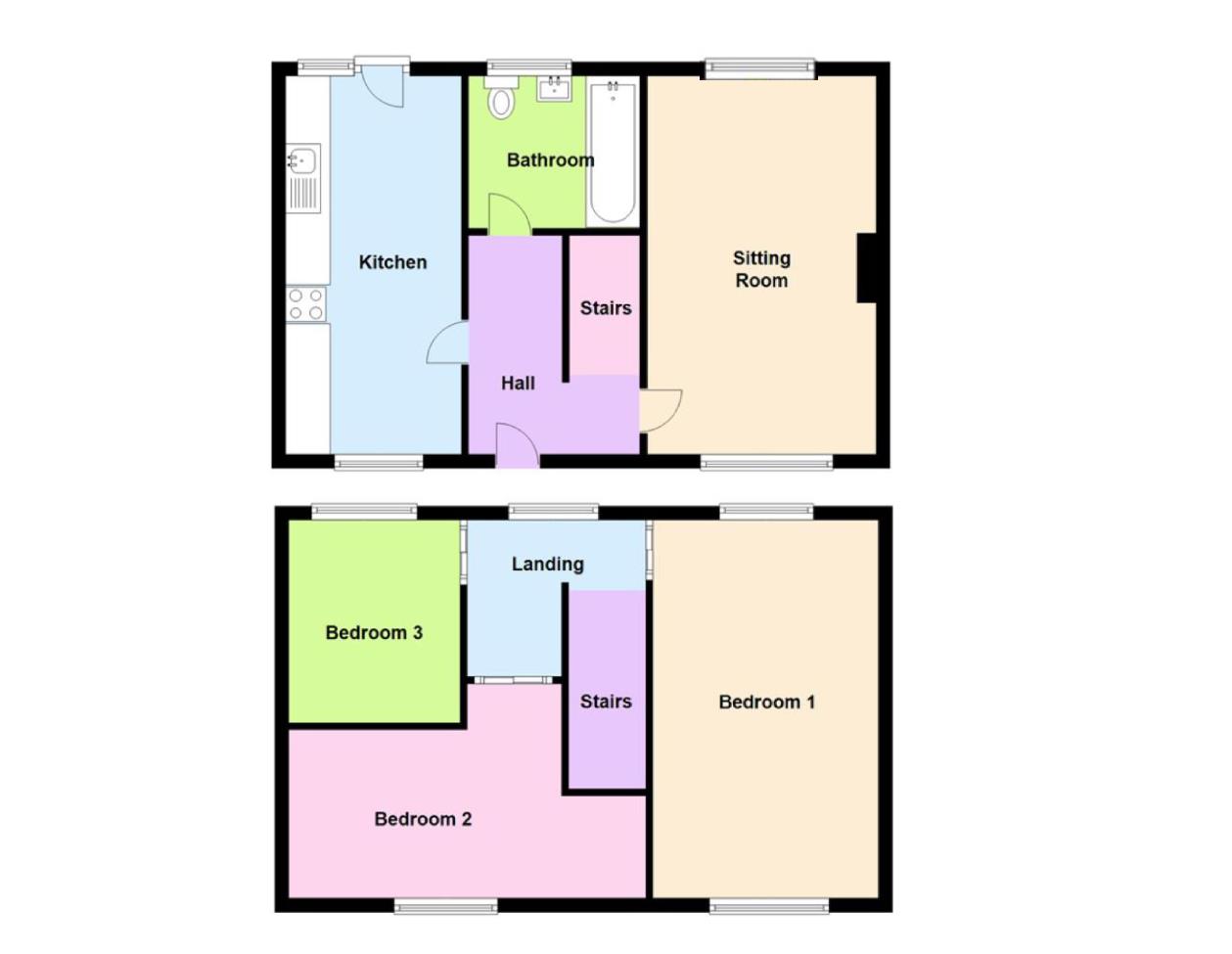 Three bedroom home with no upward chain. The accommodation briefly comprises; Entrance Hall, Spacious Sitting Room, kitchen and Bathroom. On the first-floor are three bedrooms. Outside, to the front is a fore garden and to the rear is a good-sized garden being laid to lawn with a patio area. The property is offered for sale with no upward chain. Please note, the property requires central heating and upgrading.