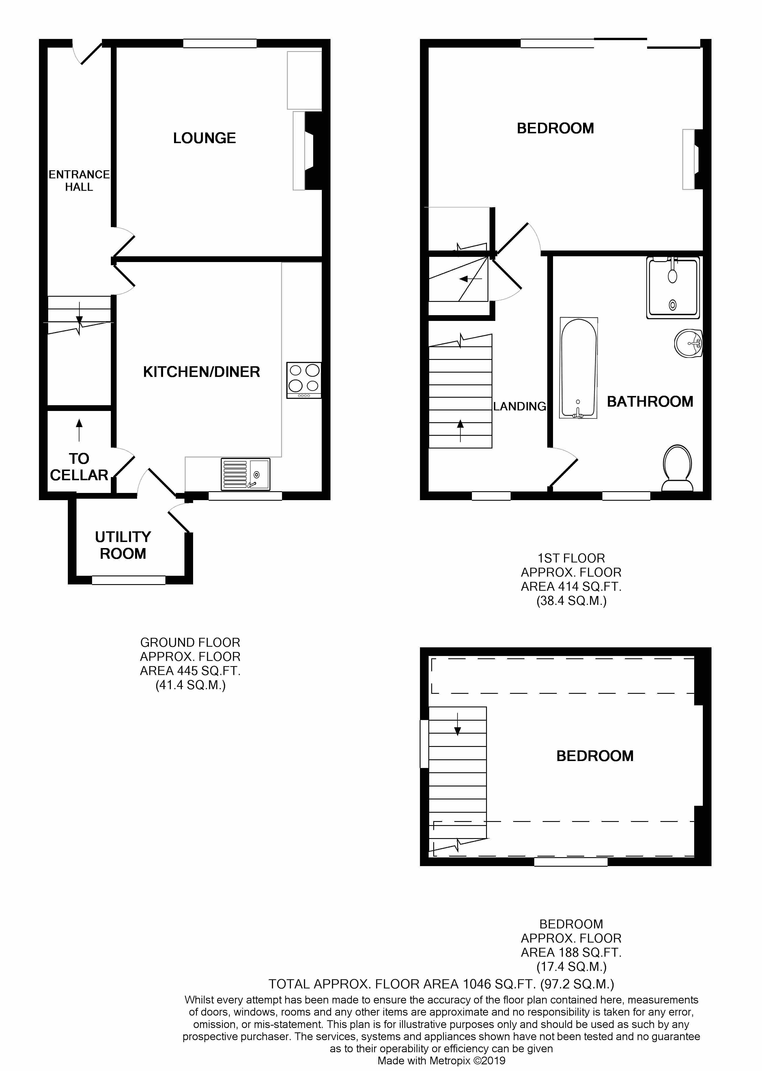 Description Externally the property has a small front yard to the front. To the rear is a patio area is south facing with space for entertaining and storage. Entering into the property via the hallway the lounge is located to the left, benefitting from a log burner and tasteful decoration. Along the hall are the stairs to the 1st floor and the beautifully appointed kitchen diner with fitting cabinets and appliances with butcher block worktops and Belfast sink. This gives access to the utility room and cellar. The cellar has space for storage and light. On the 1st floor the master bedroom is to the front and has a period feature fireplace and well decorated. The beautifully finished bathroom has a walk-in shower and roll top bath. The 2nd bedroom in the attic is another double bedroom and is currently being used as an office. Serviced Worcester boiler and double glazing throughout.