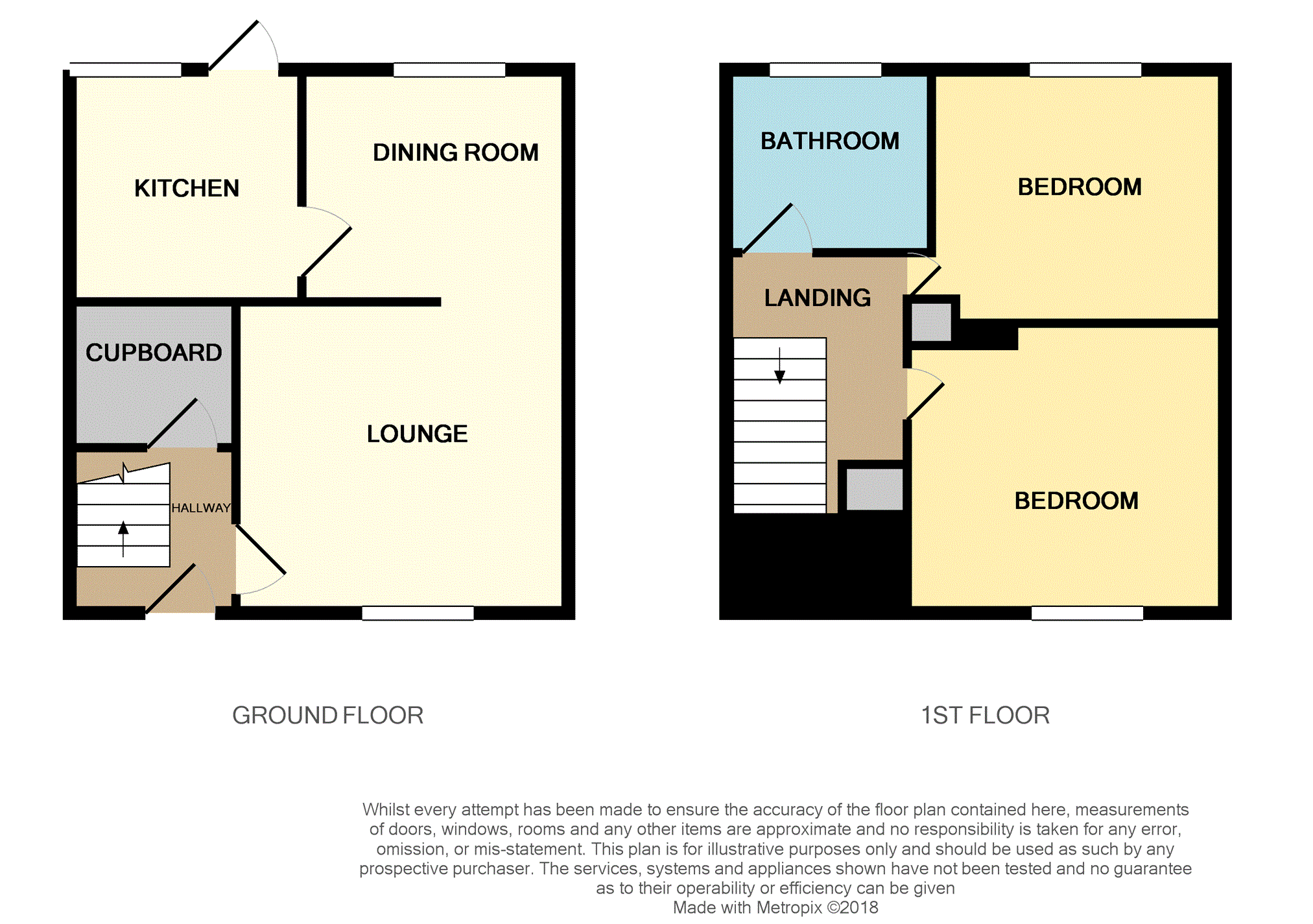 Carpeted stairway rising to first floor landing. Allows access to all upper accommodation. Access hatch to attic. Large cupboard providing ample storage and hanging space.