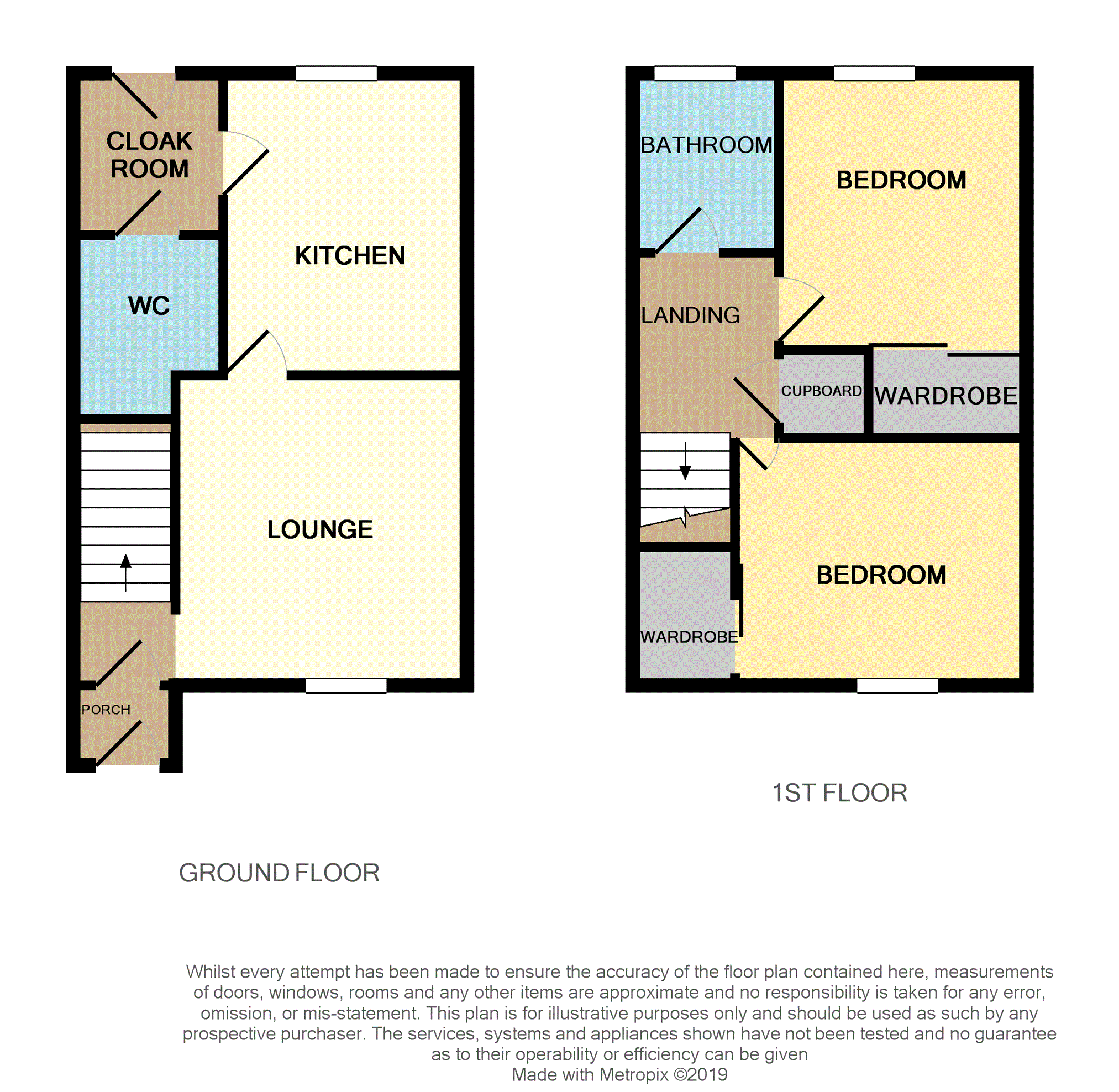 Carpeted stairway rising to first floor landing. Storage cupboard providing ample shelved storage. Allows access to all upper accommodation. Radiator. Carpeted.