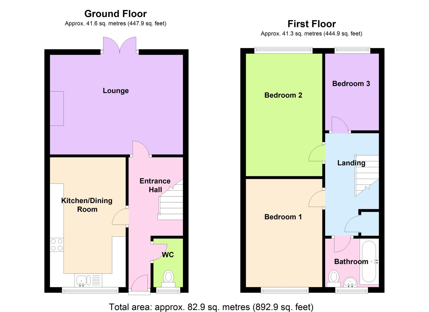The Property comprises Entrance Hall, WC, Kitchen/Diner with built in Oven and Hob, Lounge with feature fireplace and French doors to Garden, the first floor are three bedrooms (two doubles) and family Bathroom, Outside front and rear Gardens the rear with Timber Decking area, the property further boasts Garage with parking space in front, accommodation approximately 892 sq ft