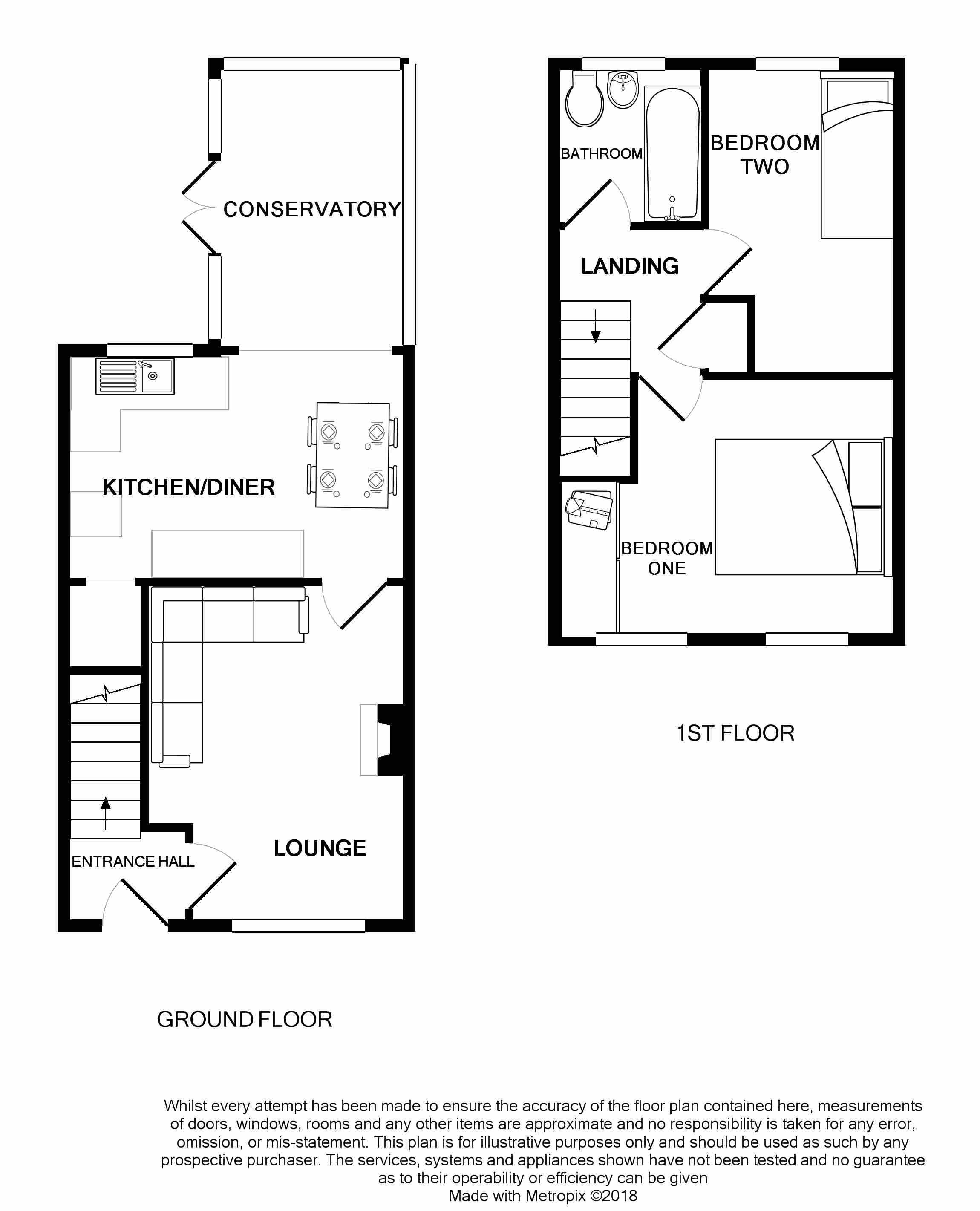 The property briefly comprises of entrance hall, lounge, kitchen diner and conservatory to the ground floor with two bedrooms and house bathroom to the first floor.
