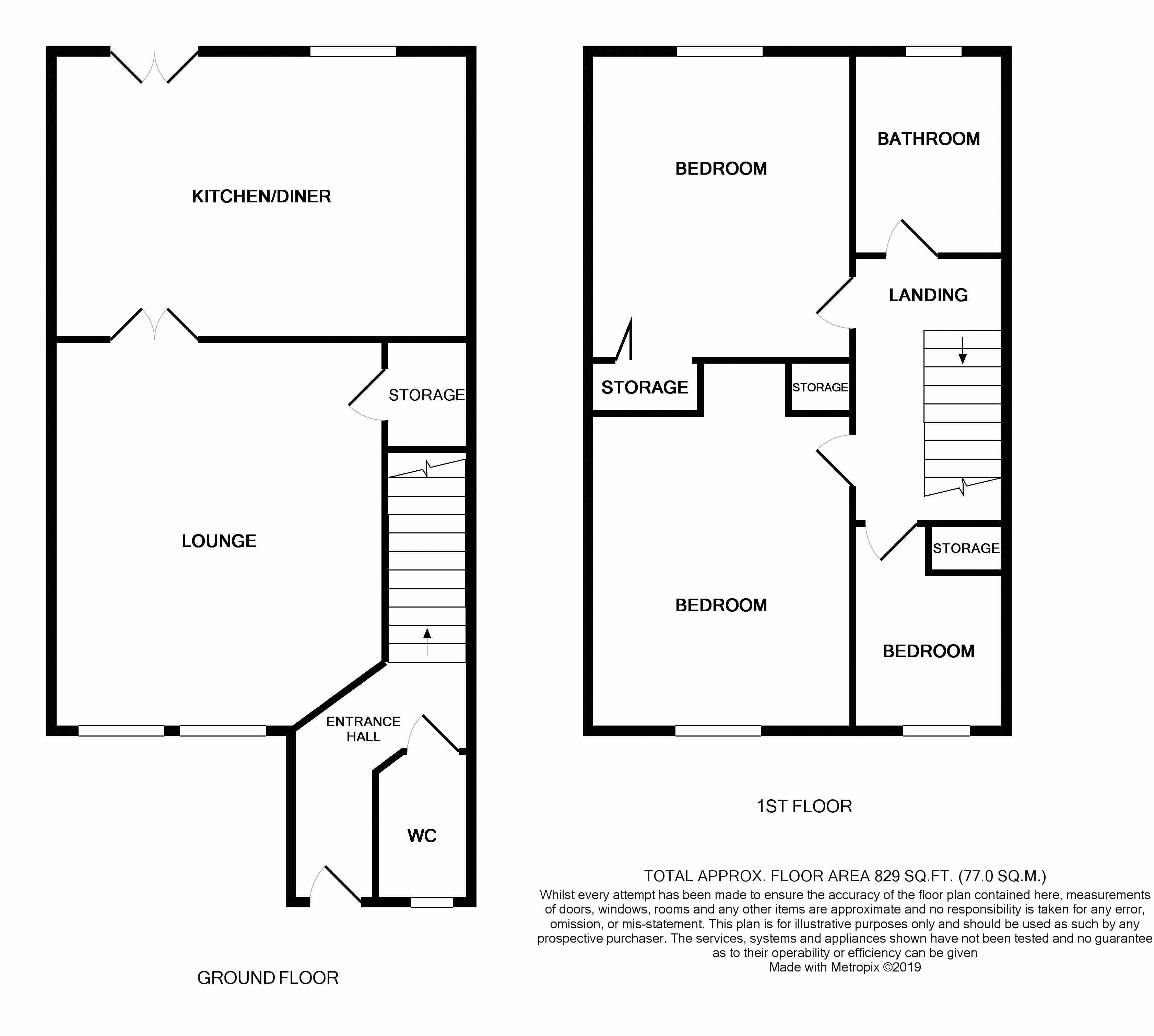 Bedroom 8' 9” x 7' 11” (2.68m x 2.42m) Approx At widest