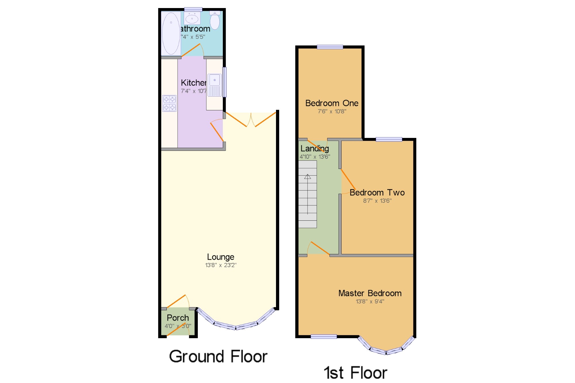 Bathroom7'4" x 5'5" (2.24m x 1.65m).