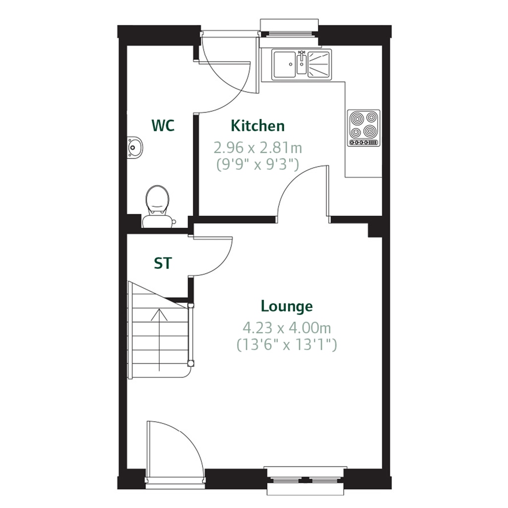 On the ground floor of this ideal starter home you'll find a large lounge, overlooking the front garden, spacious kitchen, a convenient downstairs WC and handy under stair storage.