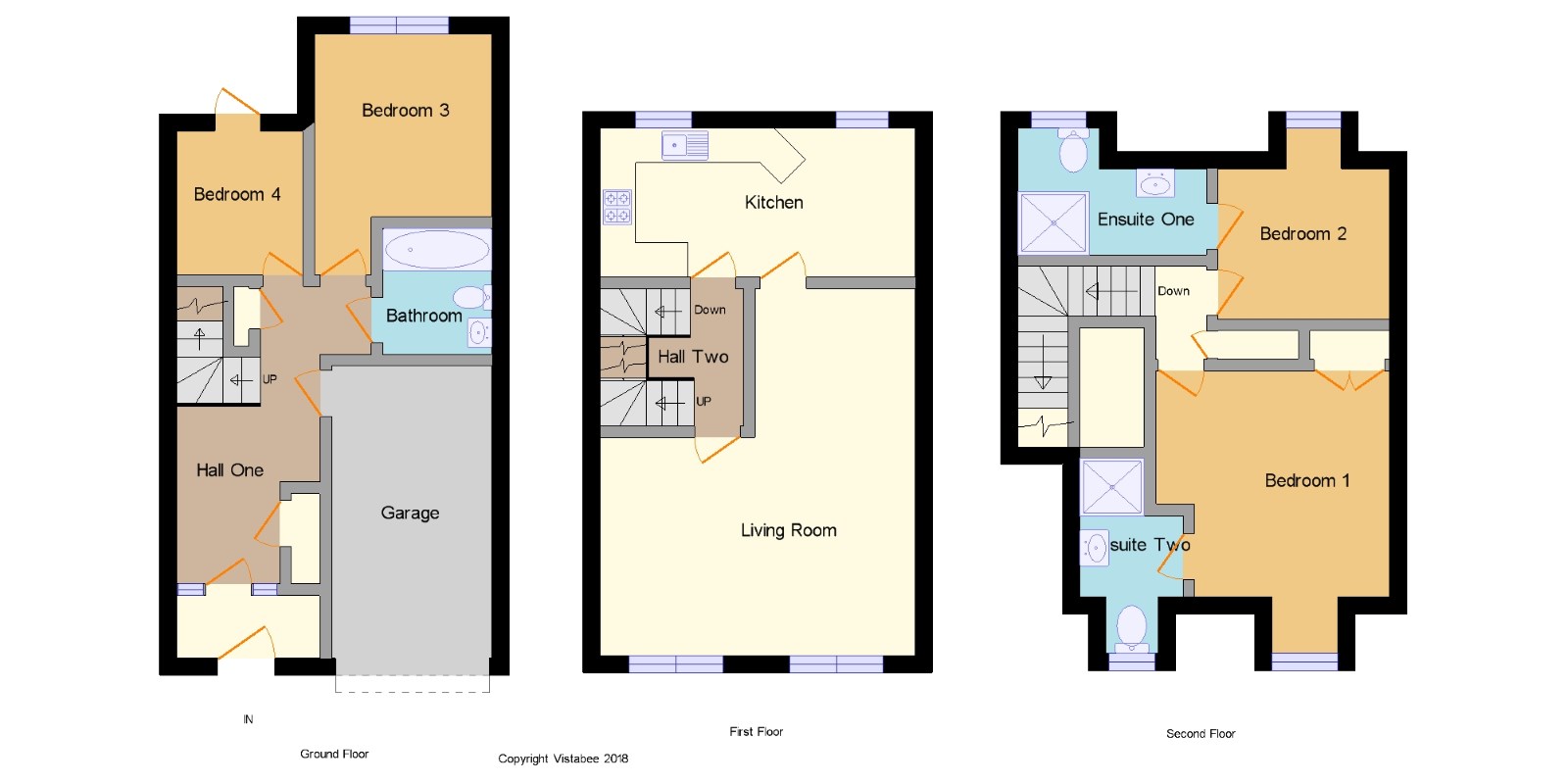 2 main bedrooms on top floor with en-suites to both
