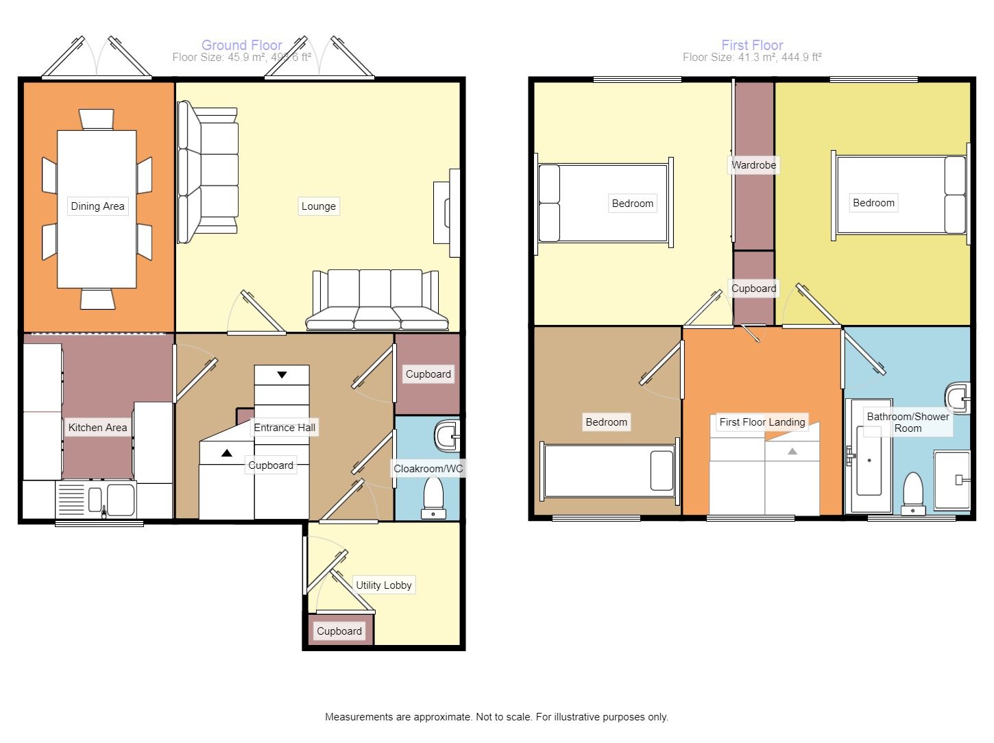 Entrance door opens into the utility/lobby area with tiled floor, plumbing for automatic washing machine, vent for tumble dryer, storage cupboard and door opening into the entrance hall.