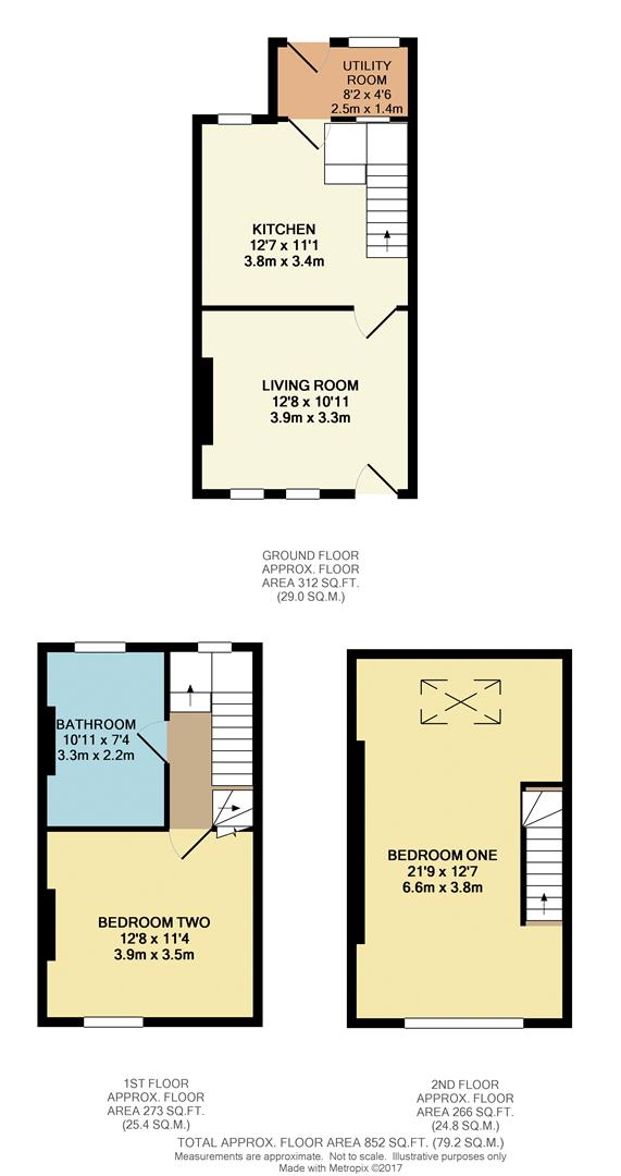 To the first floor is a good sized double bedroom and house bathroom. To the second floor is the master bedroom, with far reaching views to the front and rear of the property.