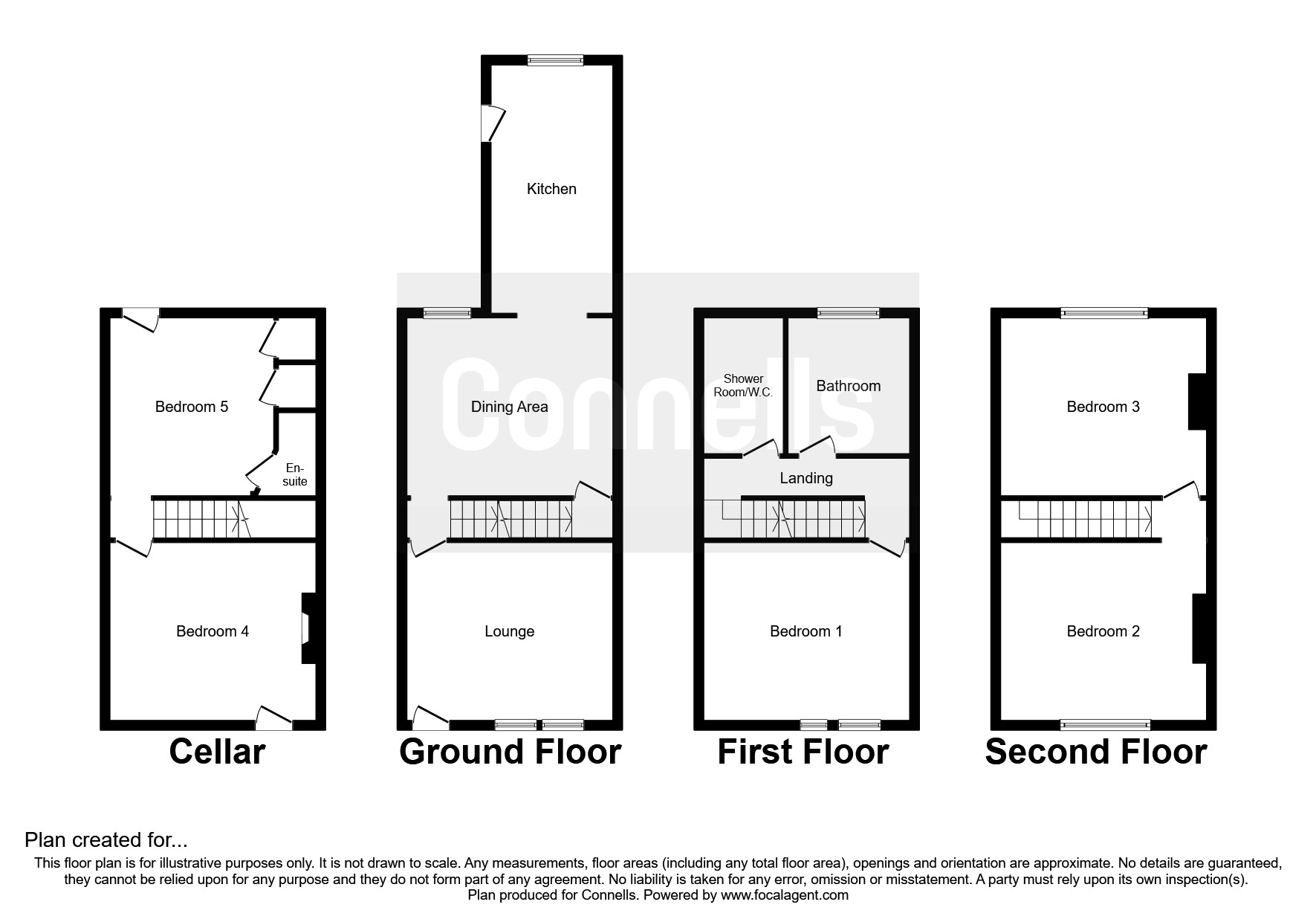 Situated in this popular residential location, an impressive terraced house offered for sale with no onward chain. The property comprises on the ground floor lounge, dining room and kitchen. On the first floor there is a bedroom, sower room and separate wc. On the second floor there are a further 2 bedrooms. The cellar has been converted to provide 2 extra bedrooms. Outside the property benefits from a private rear garden.