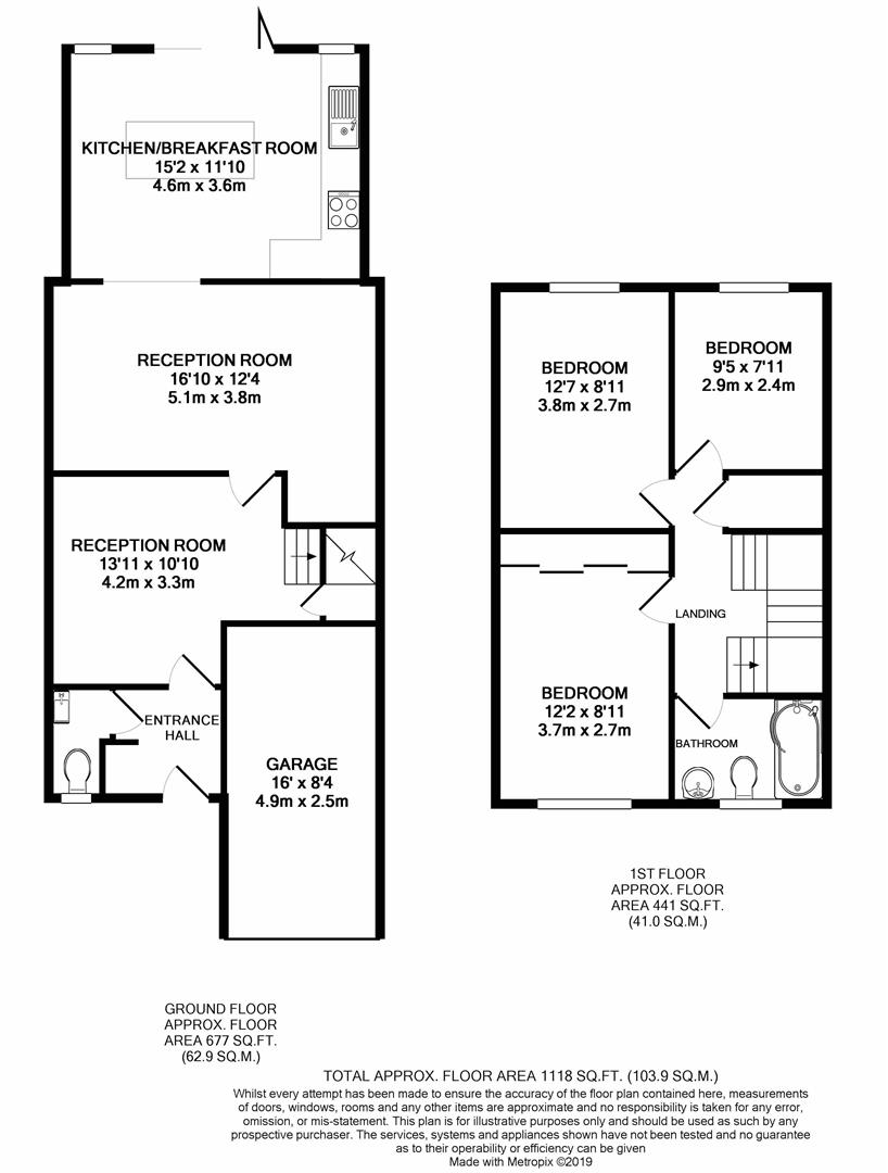 Block paved driveway to front for two cars, garage with up and over door, power and light, boiler, plumbing for washing machine.