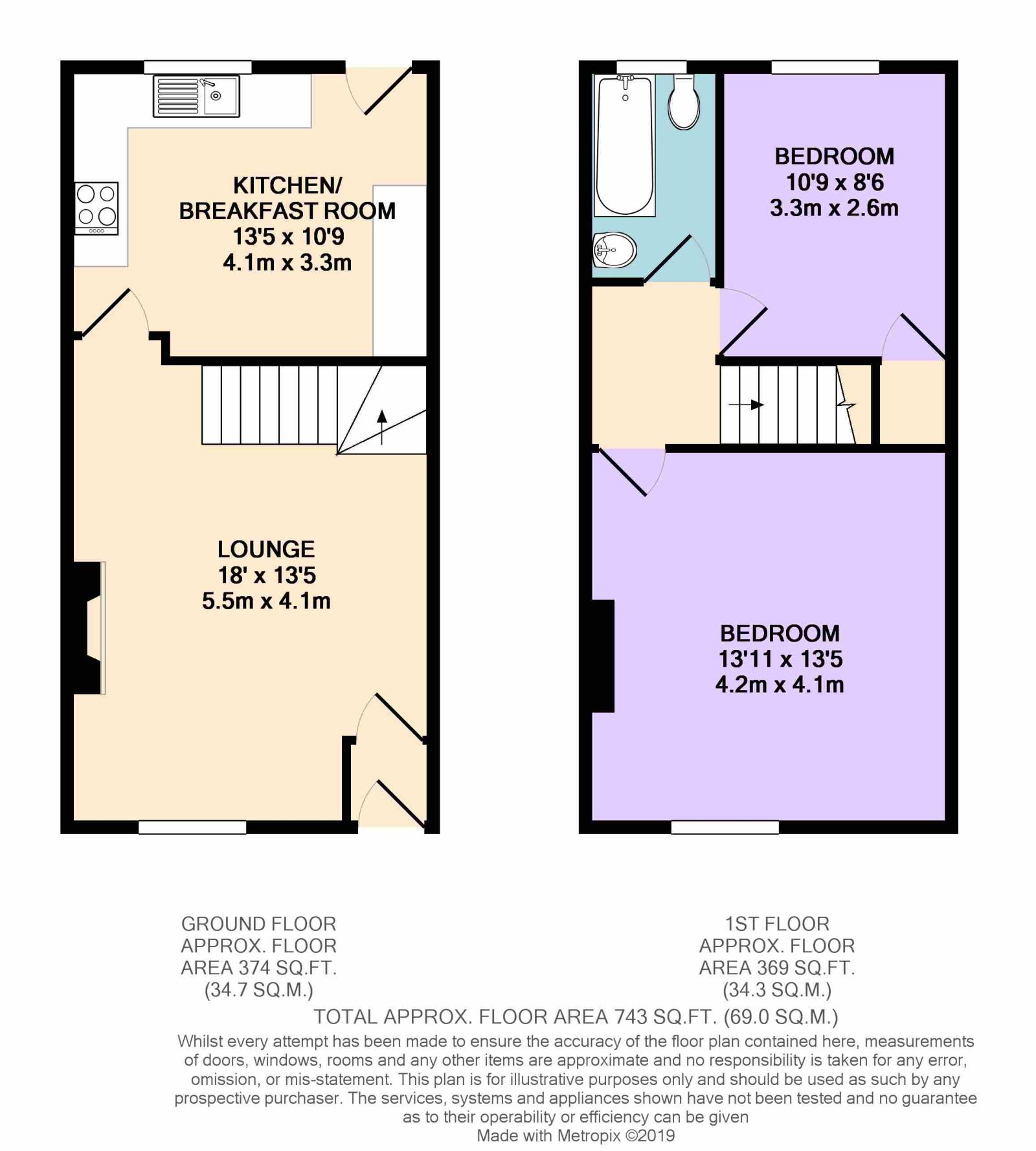 The first floor gives you two double bedrooms. The master at the front of the house with its light and bright feel and a second which overlooks the rear garden. Between the two is the family bathroom with its three piece white suite and thermostatic shower over the bath.