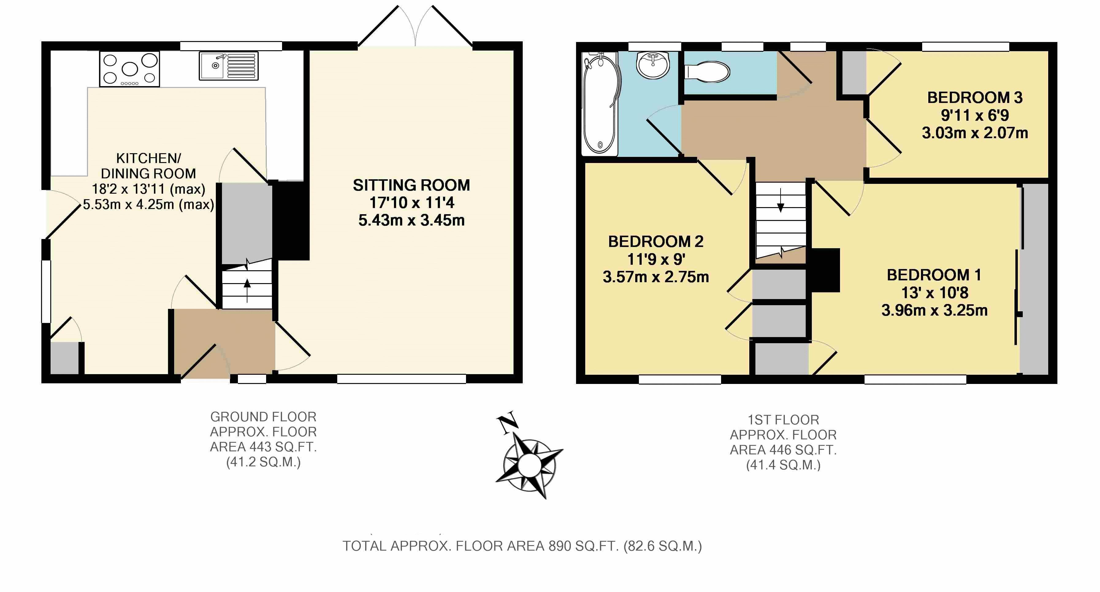 No onward chain. An extremely well presented 3 bedroom end of terrace property situated on the Blackdown View development with the added benefit of 2 off street parking spaces. The property comprises; entrance hall, 17ft dual aspect sitting room with French doors opening to the garden, modern fitted kitchen/dining room and a first floor white suite bathroom and separate WC. Further benefits from double glazing, gas fired heating and an enclosed corner plot rear garden.