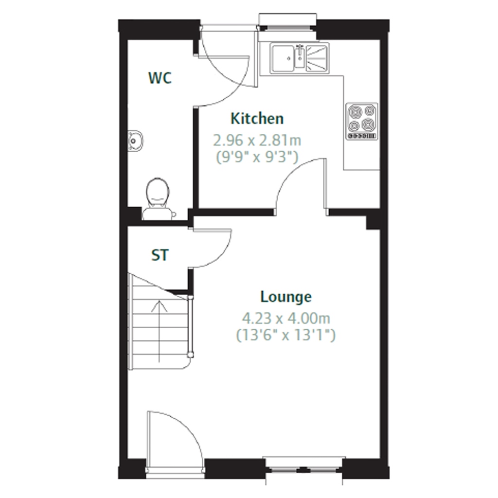 On the ground floor of this ideal starter home you'll find a large lounge, overlooking the front garden, spacious kitchen, a convenient downstairs WC and handy under stair storage.