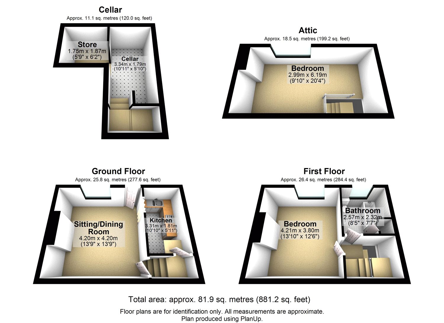 Cellar 10'11" x 5'10" (3.33m x 1.78m). Useful for storage.