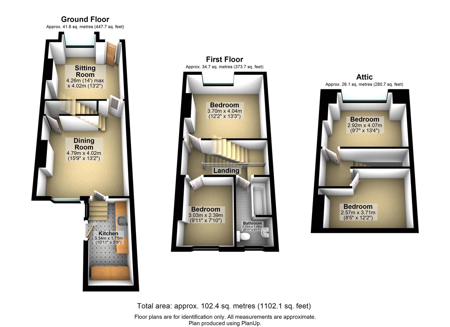 Landing Carpeted landing with doors leading to both first floor bedrooms and the family bathroom. A staircase from here leads up to the attic level.