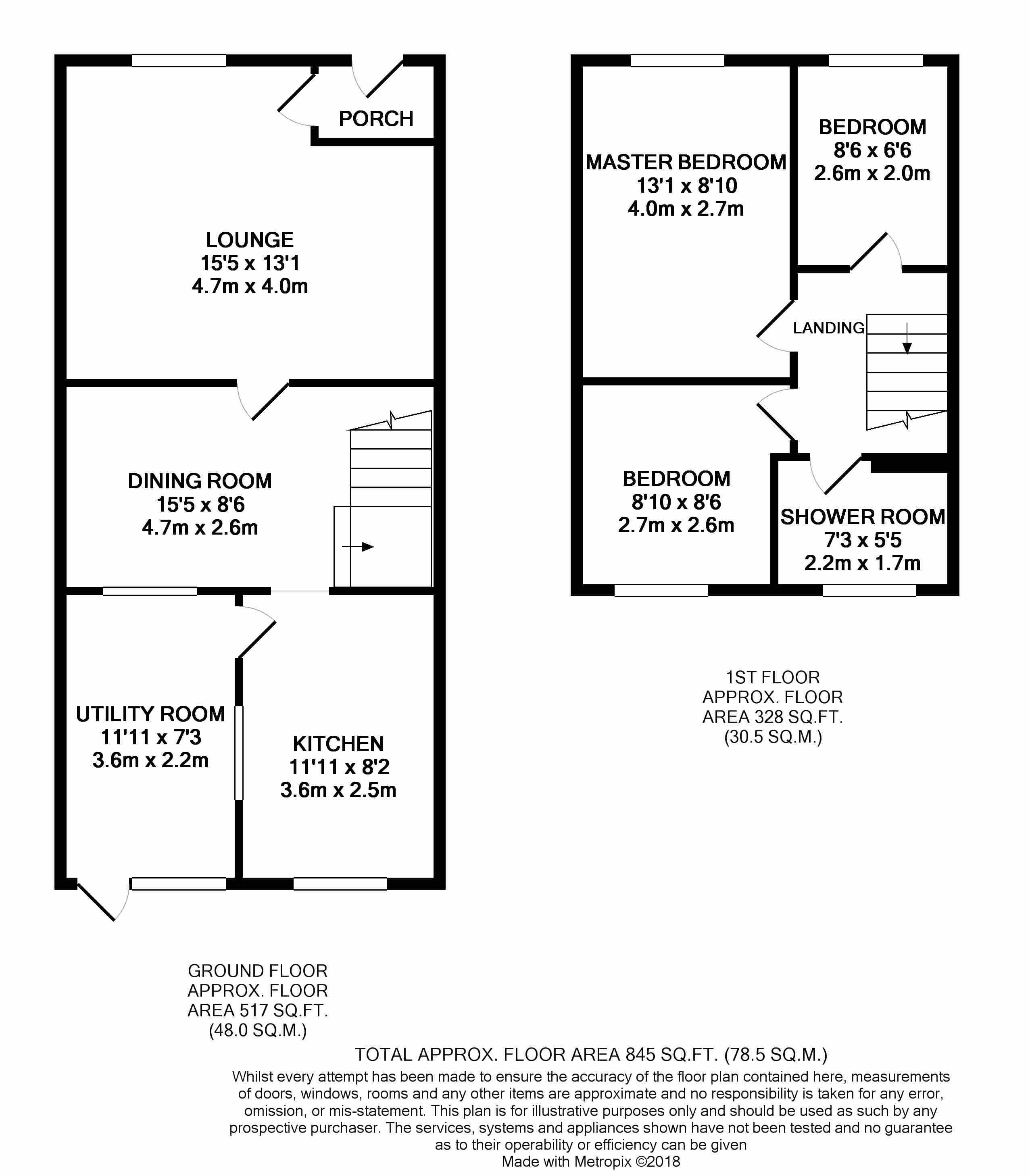 The first floor has two double bedrooms, a single bedroom and a shower room. The shower room has a recently installed power shower, low level WC and wash hand basin over vanity unit.